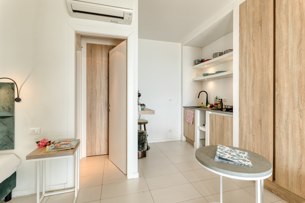Extra: The living room features a single sofa, a wardrobe, and direct access to the terrace.