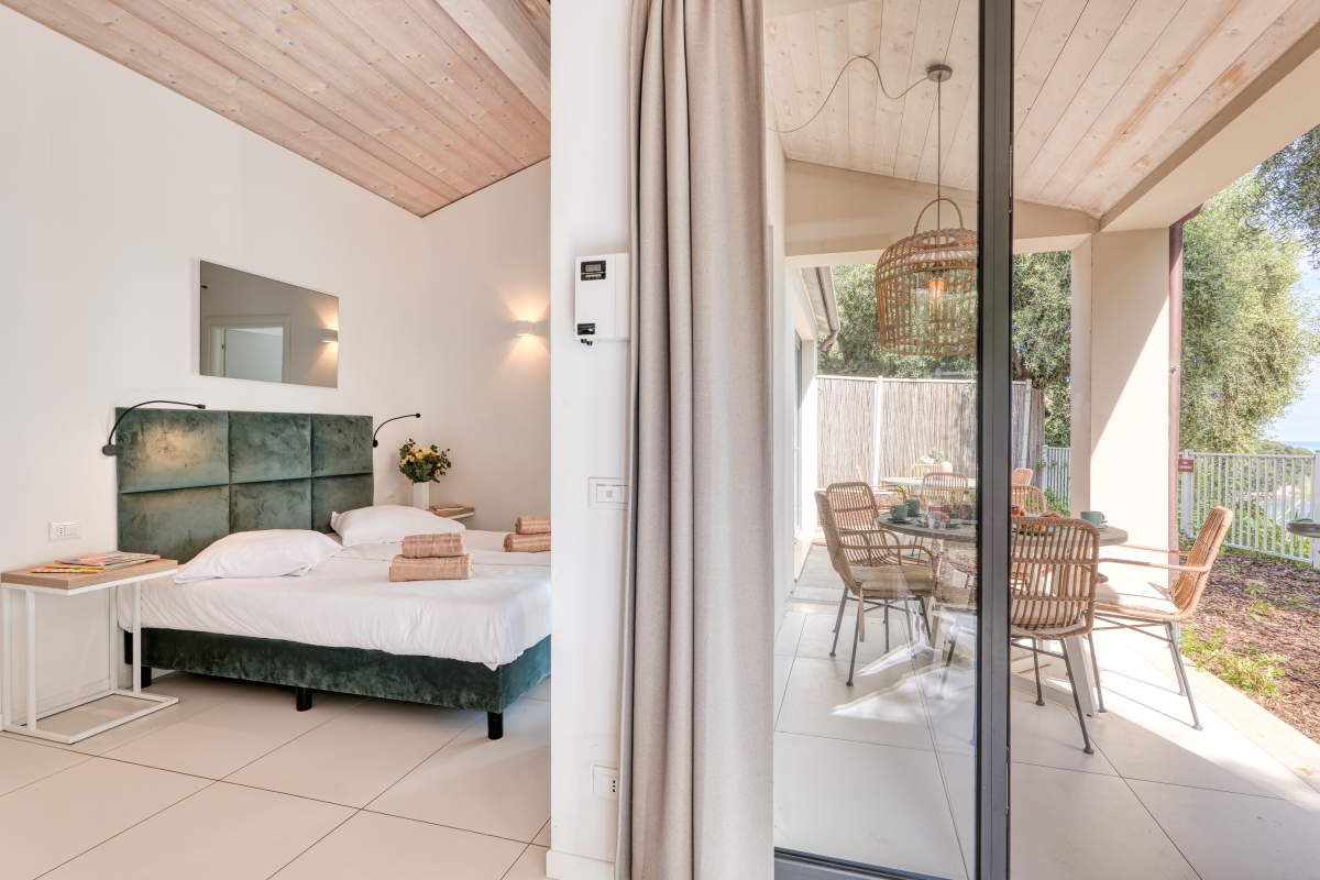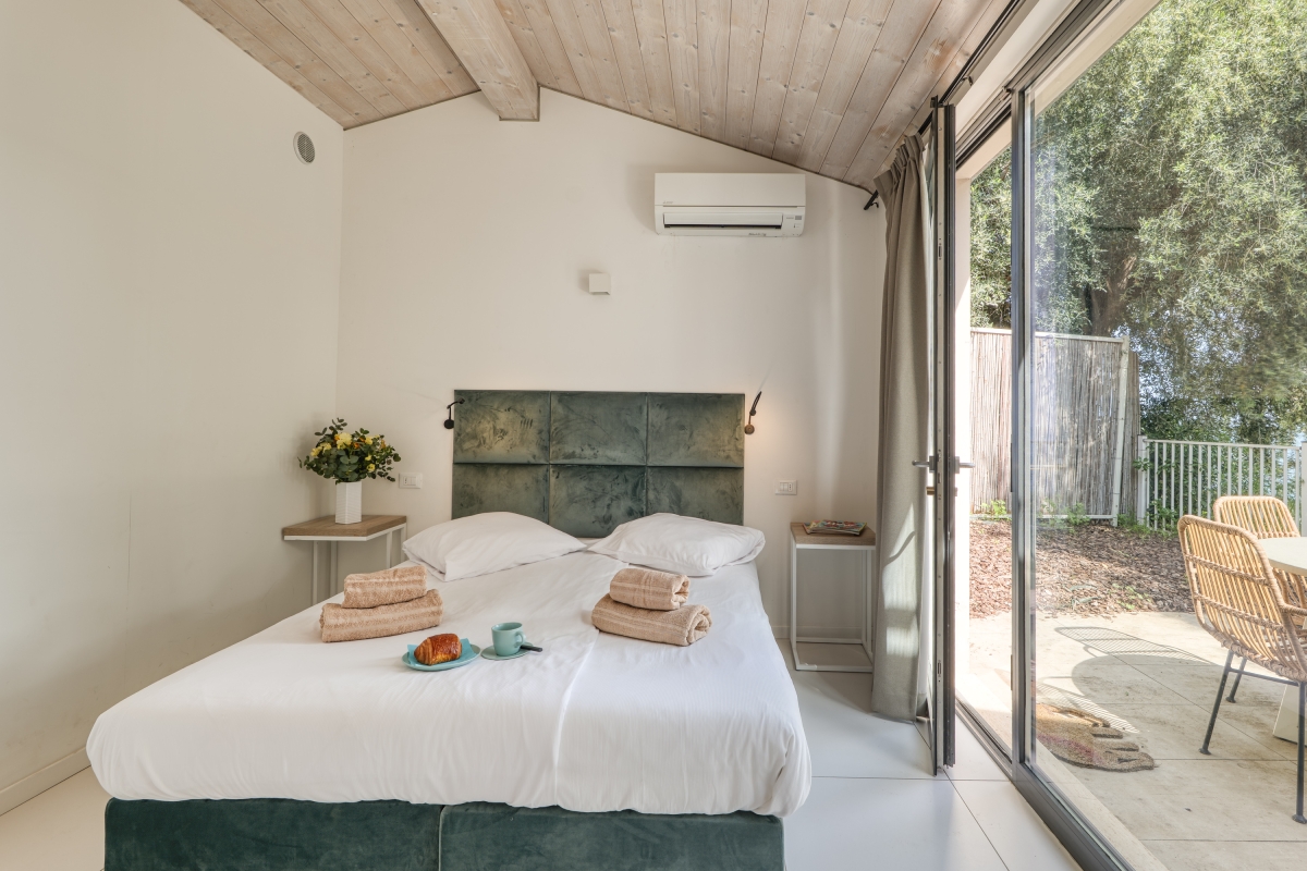 Bedroom 1: Features a comfortable double bed, air conditioning, and a private terrace.
