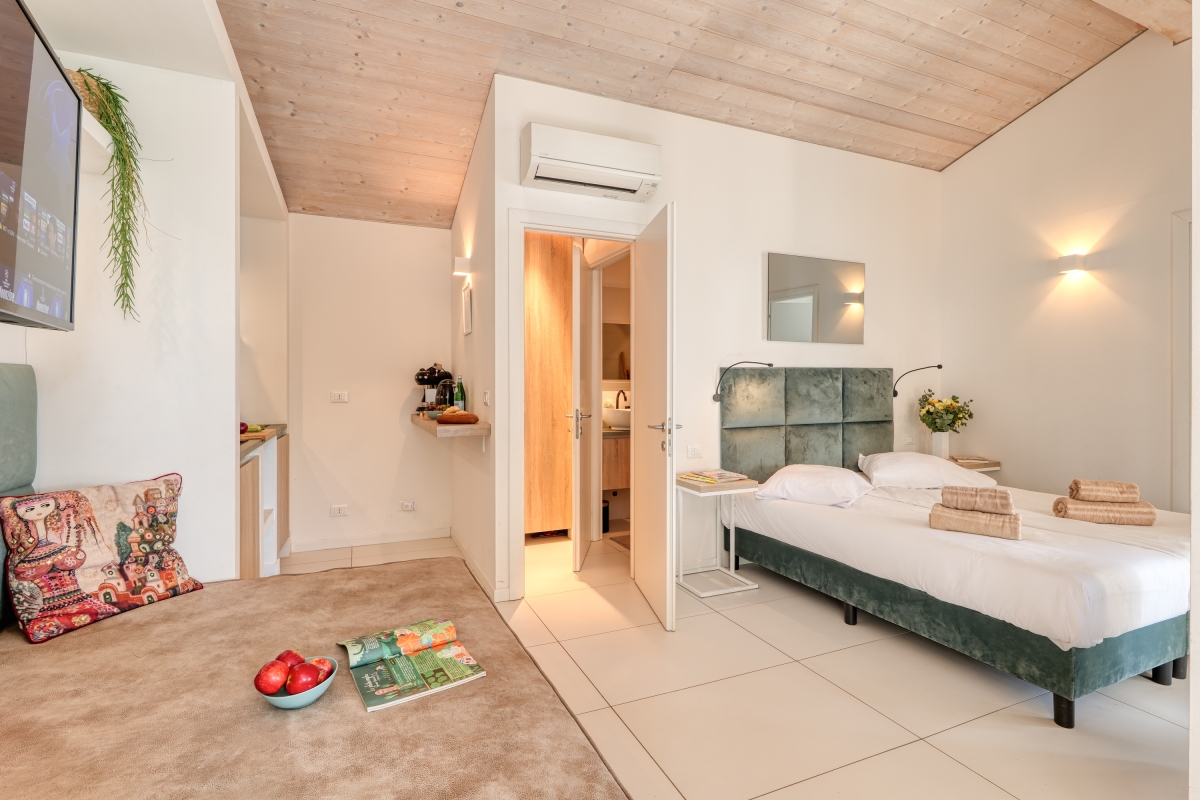 Extra: The living room has a single sofa bed and a double bed, and terrace access.