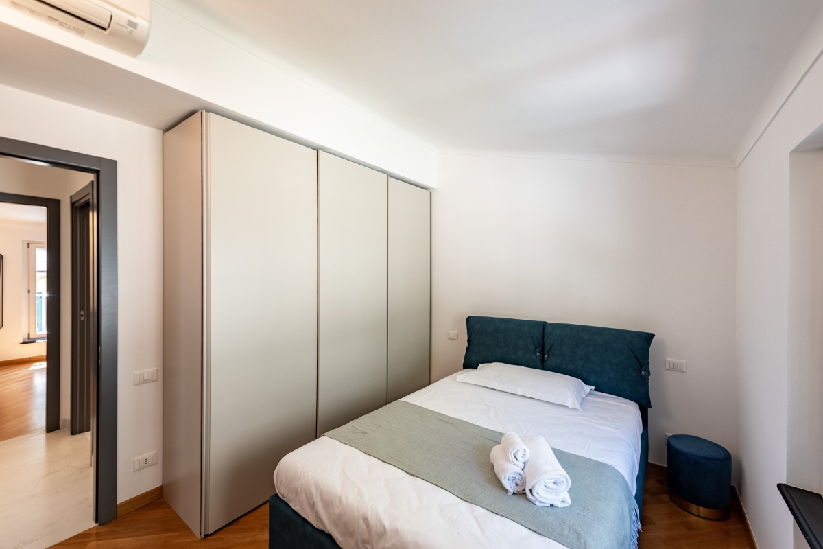 Bedroom 1: This bedroom enjoys access to the balcony and has a double bed and a wardrobe.