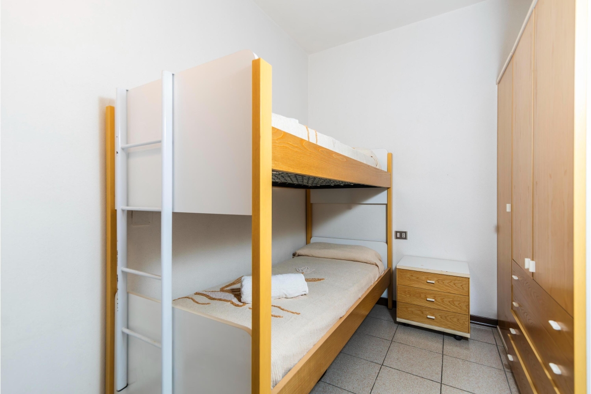 Bedroom 2: The second bedroom is furnished with bunk beds and a wardrobe.