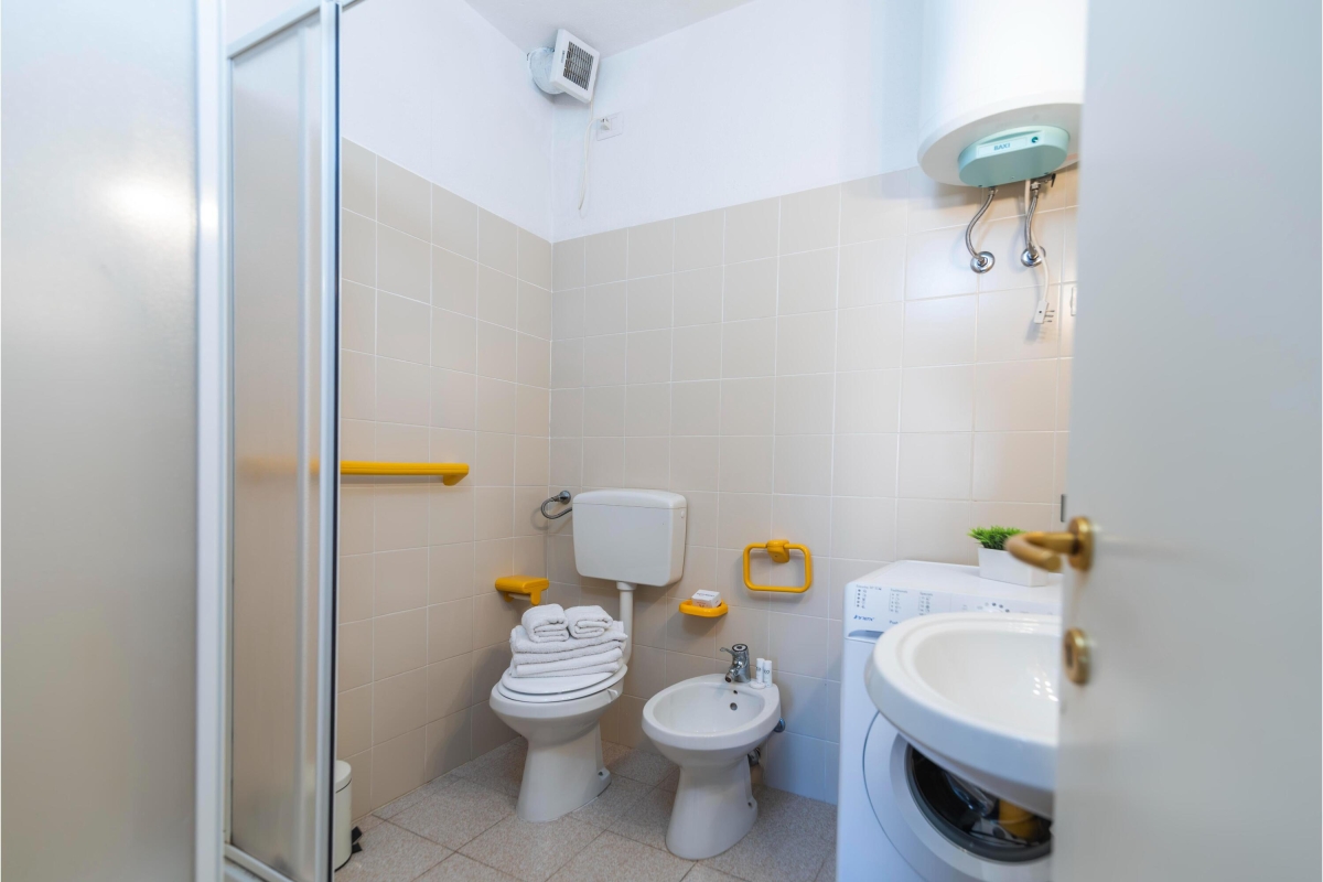 Bathroom 1: The bathroom is equipped with a shower, a bidet, a washbasin and a WC