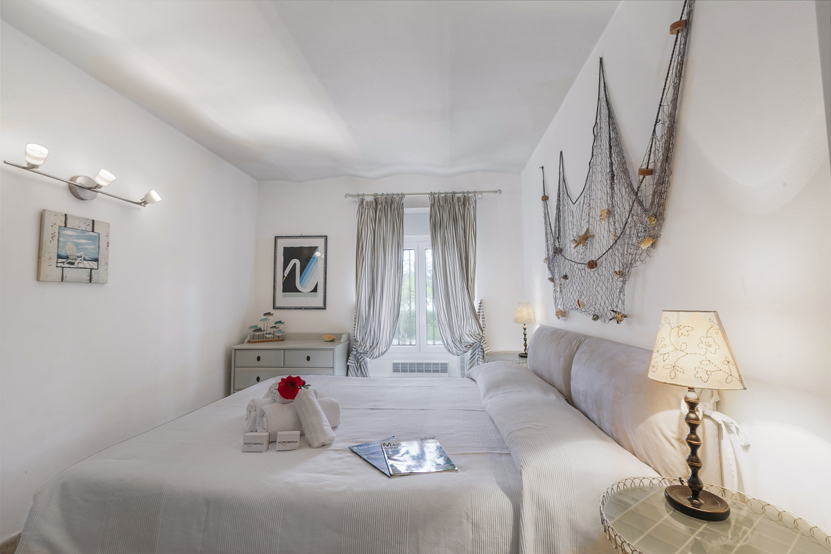 The villa’s shared garden offers the perfect escape and includes several stone tables and benches which are ideal for a glass of wine at sunset.