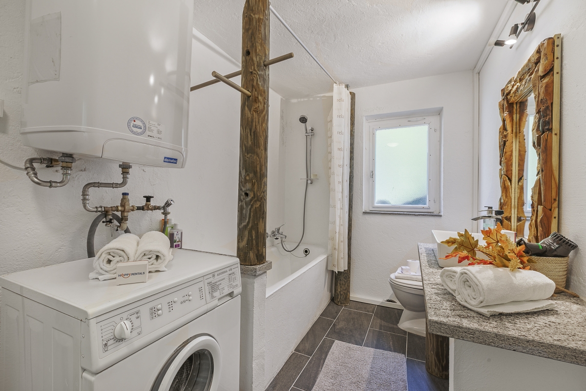 This rustic, 3-bedroom home spans multiple levels and sleeps up to 6 guests. The ground floor features an authentic stone floor, a cosy living room with a fireplace, and a well-equipped kitchen with a Nespresso coffee machine, cooker hob, an electric oven, a stove, a Nespresso machine, and a fridge with freezer. Upstairs, you’ll find a spacious bathroom with a bath and washing machine, along with two bedrooms (one twin and one double), and another double room on the top floor—all with peaceful mountain views. Its serene atmosphere and easy ground-floor access make it suitable for elderly visitors as well.