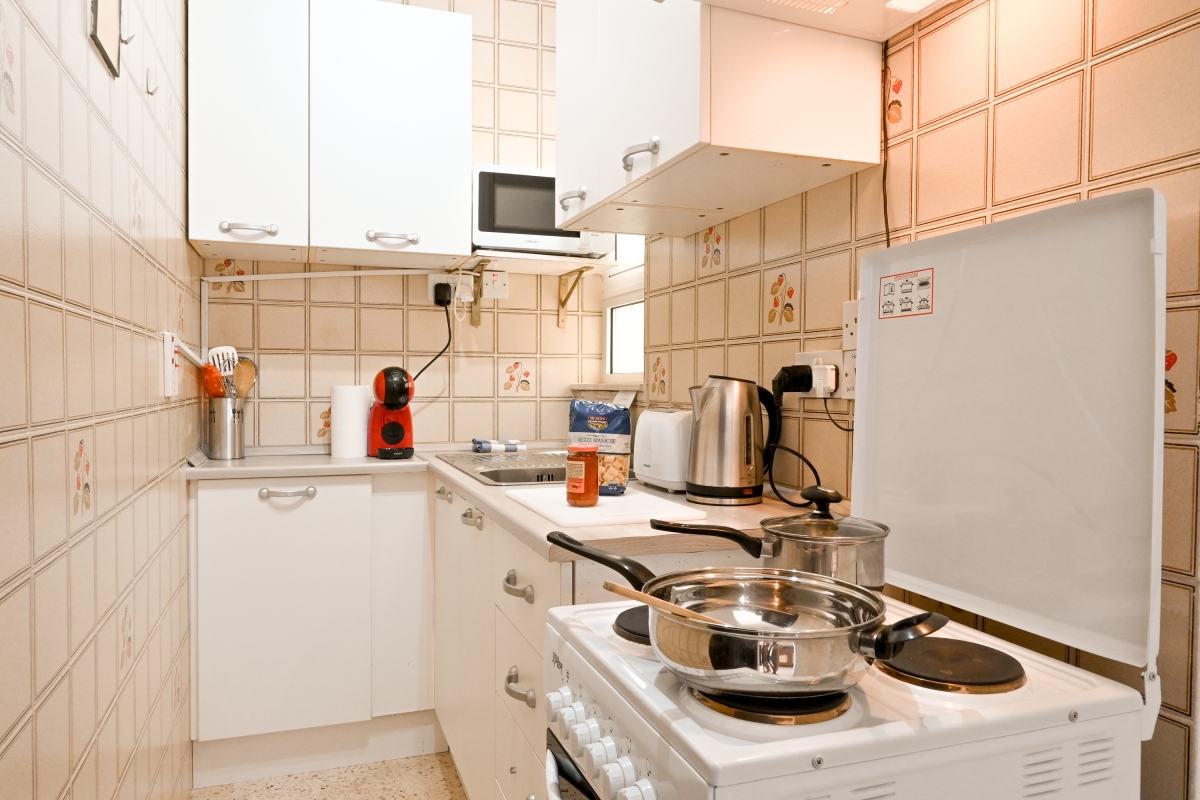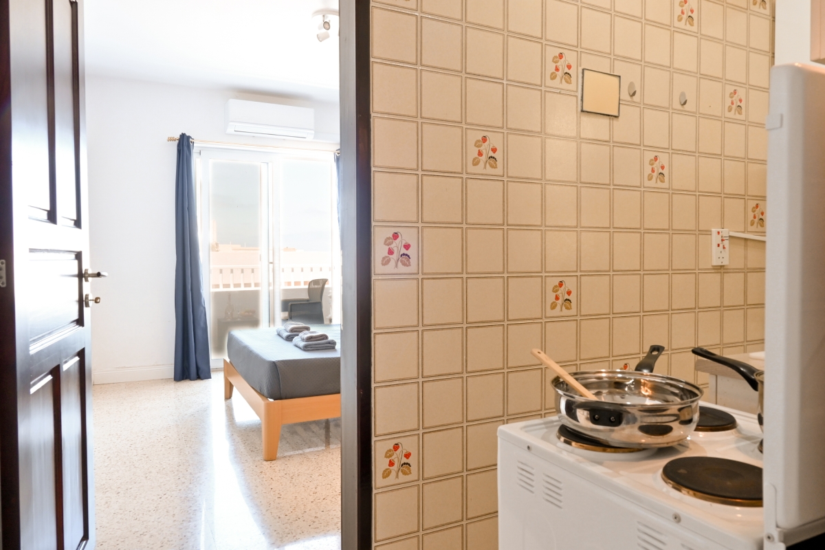 Ideally set up for outside living, the property features a private balcony and access to the shared rooftop terrace, with a BBQ and dining area with panoramic views of the Mediterranean.