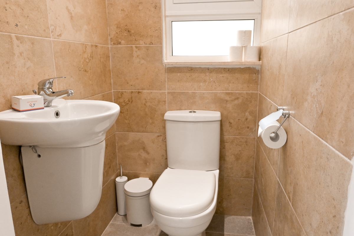 Bathroom 2: The second bathroom is fitted with a washbasin and a WC.