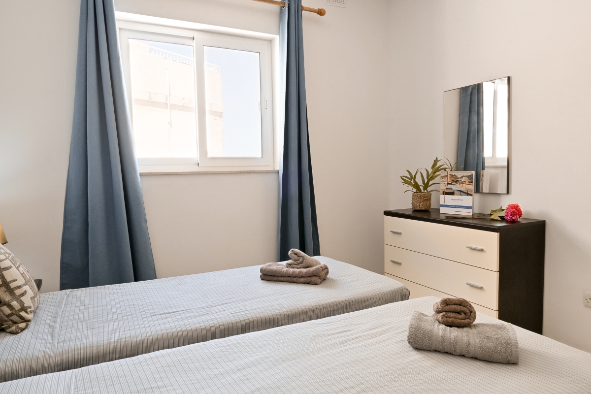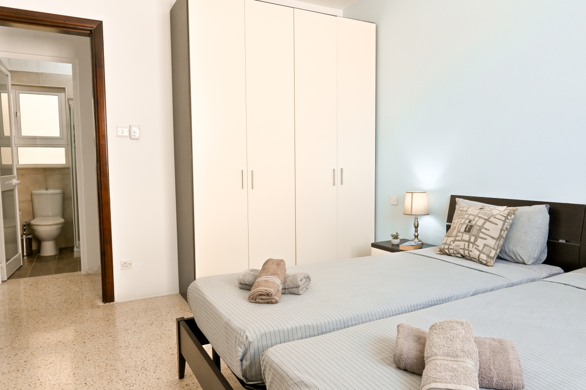 Bedroom 2: The second air-conditioned ensuite bedroom is furnished with two single beds and a wardrobe