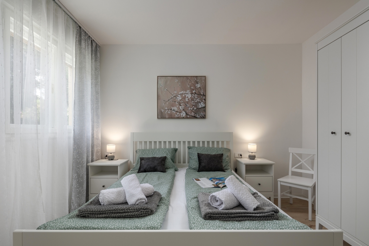 Just 2 minutes from the beach, City Apartment Nurli is a modern, ground-floor apartment for 3. The building is surrounded by greenery and is well-located for guests to explore the fascinating area around the Kvarner Gulf.