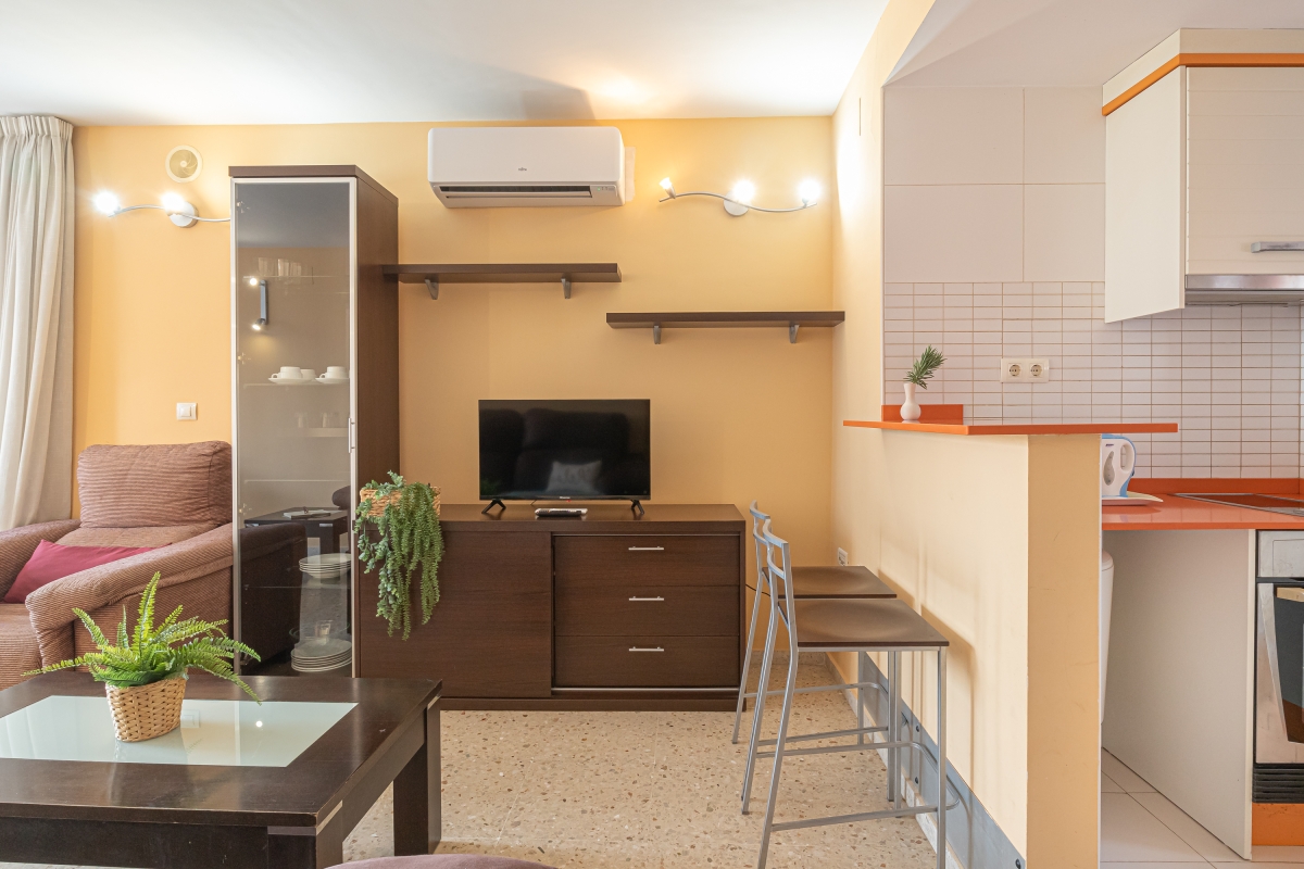 Extra: The living room features a double sofa, a wardrobe, and air conditioning, with direct access to the terrace.