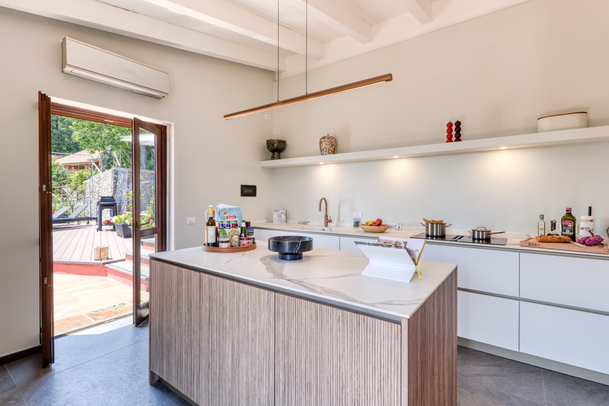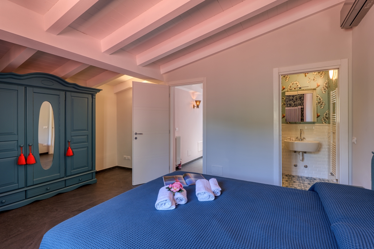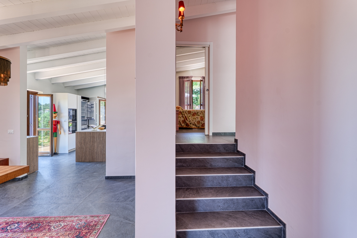 For those seeking seclusion, a short climb through the estate’s olive grove leads to a romantic terrace overlooking the hills and sea—an unforgettable setting for a quiet retreat.