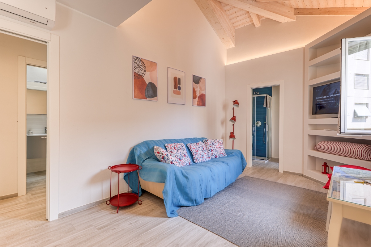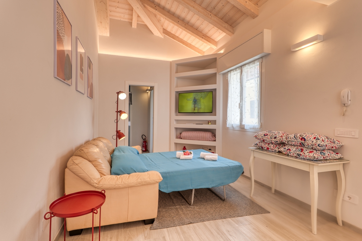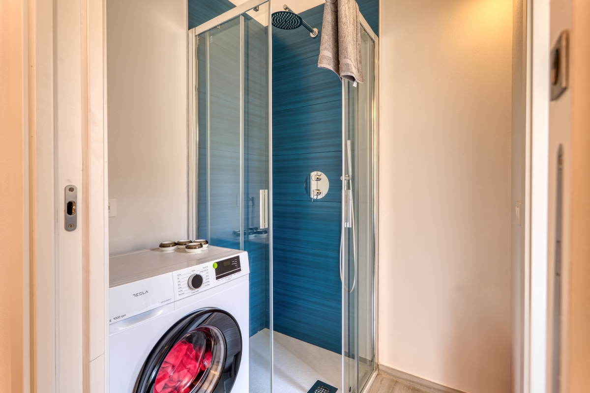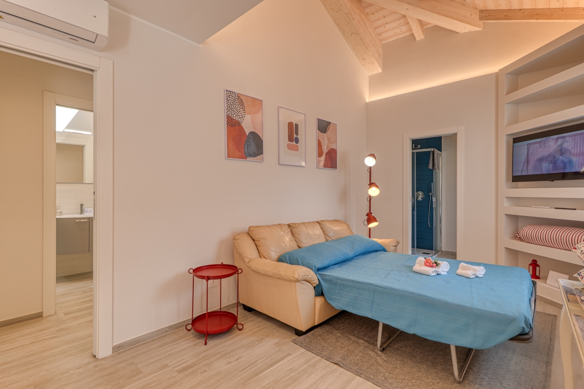 Outside, you can relax on a lovely terrace with two loungers and an umbrella, perfect for enjoying your morning coffee or evening relaxation. There is a private parking space in the courtyard and a small garage dedicated to bicycle storage. There is a beautiful bike path just 4-minutes from the property.