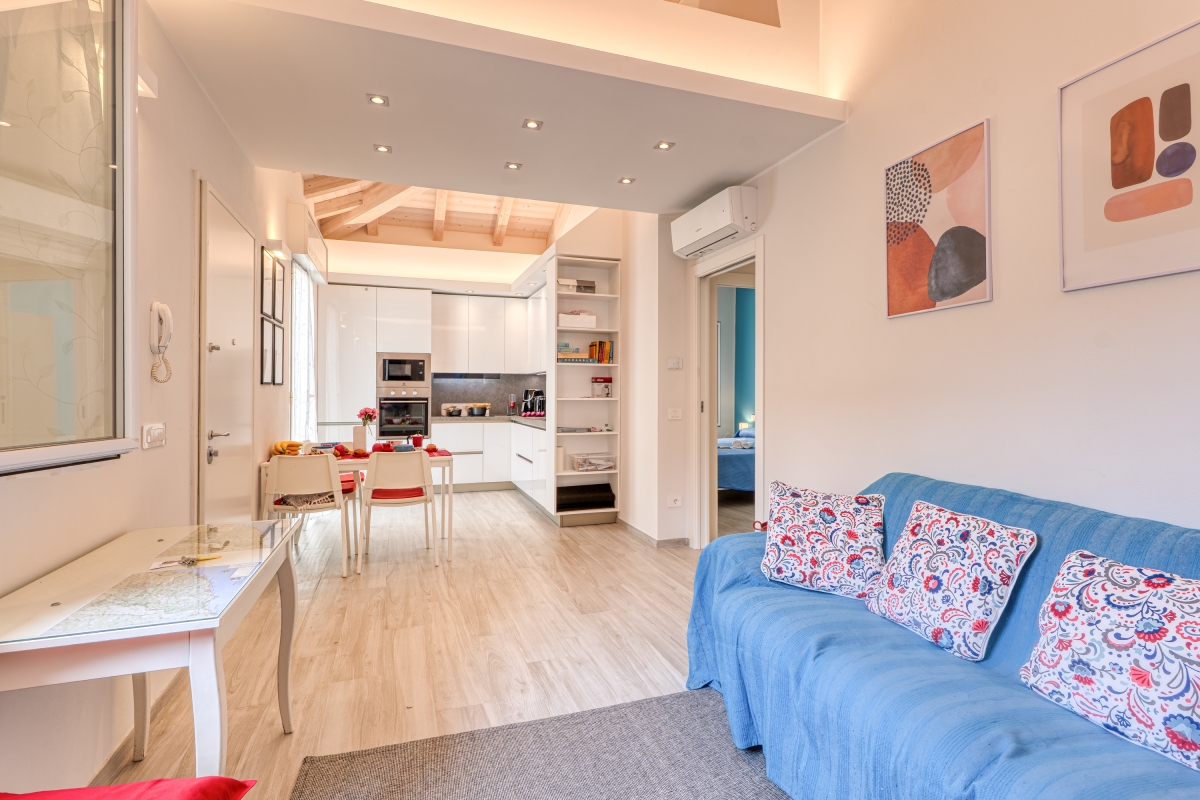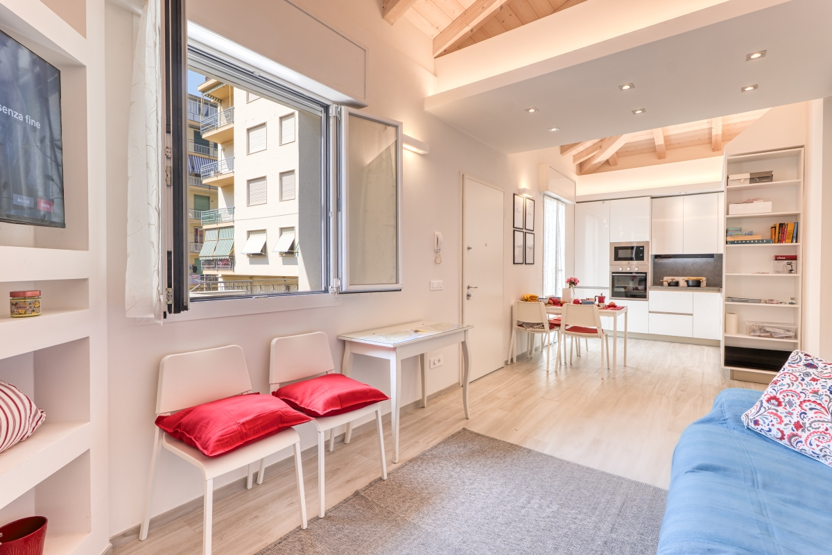 This is a first-floor apartment that accommodates up to 6 guests. Perfectly positioned along the scenic Ligurian coast, the apartment is just a 10-minute stroll from the beach and within easy reach of the lush gardens of Villa Ormond and the vibrant seaside promenade.