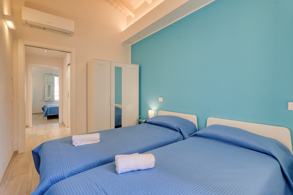 Bedroom 2: This bedroom includes two single beds and air conditioning.