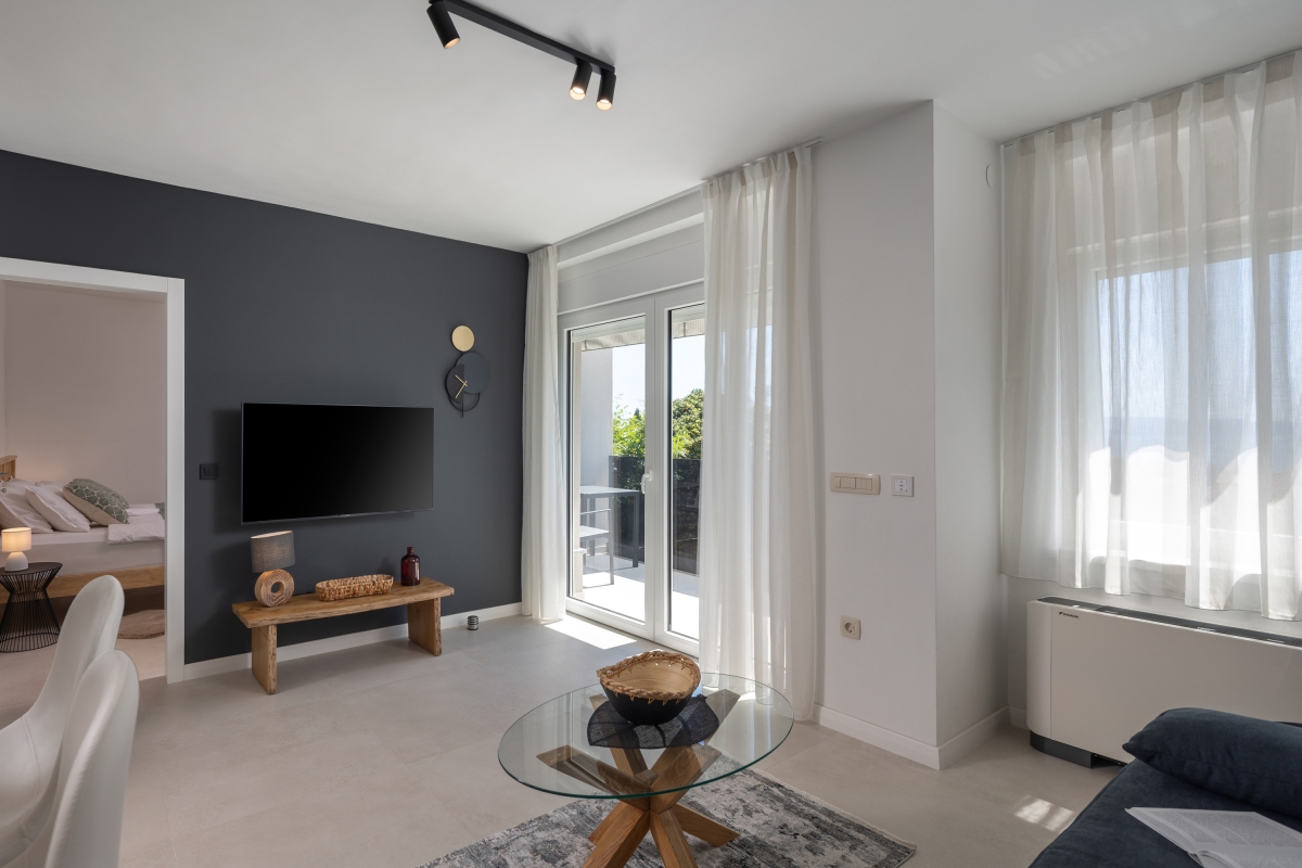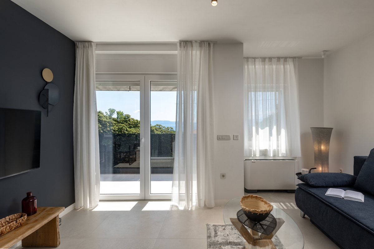 Modern Seaview Apartment 4 is a luxurious contemporary holiday home for 3. On the first floor of a stylish residence, with a balcony with a sea view, it is ideal for a couple or small family who want to explore Croatia’s Kvarner Gulf.