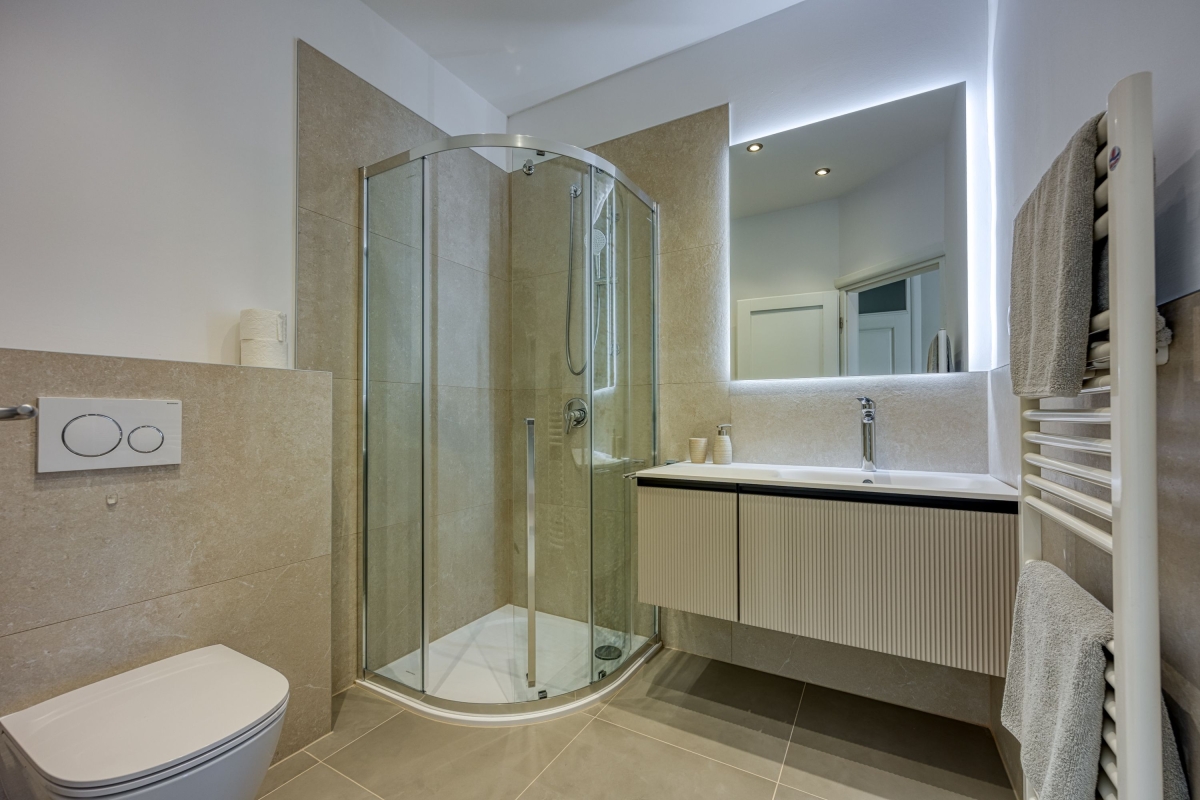 There are two separate, tiled bathrooms. Each has a shower, basin and WC.