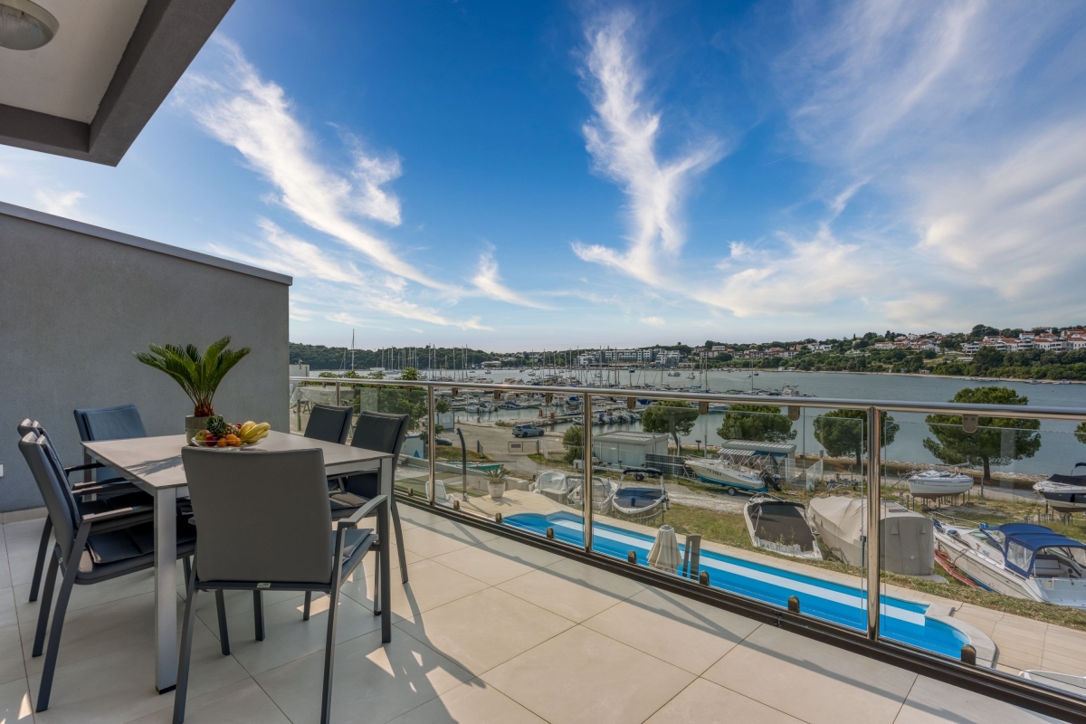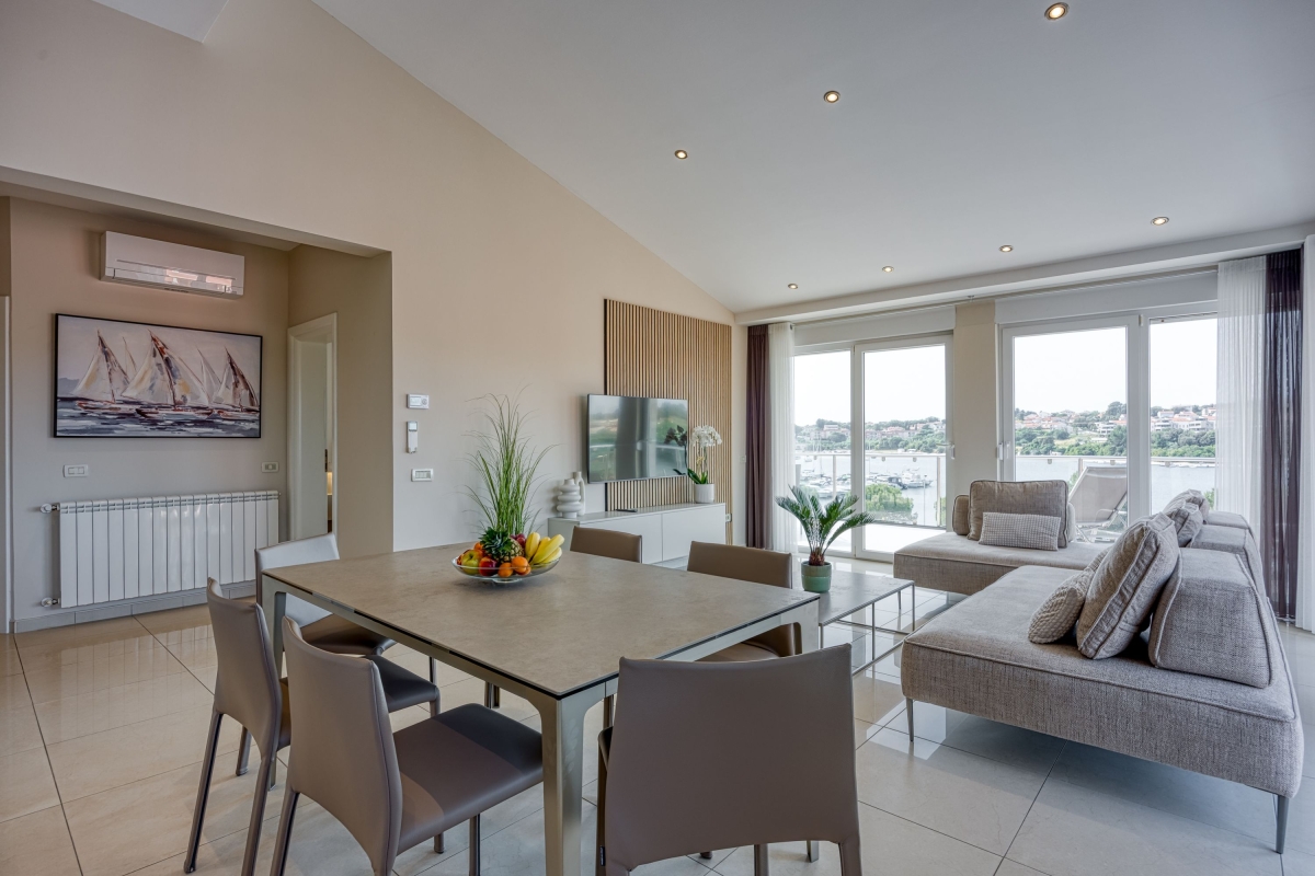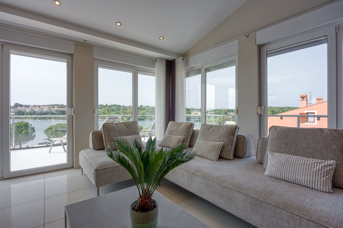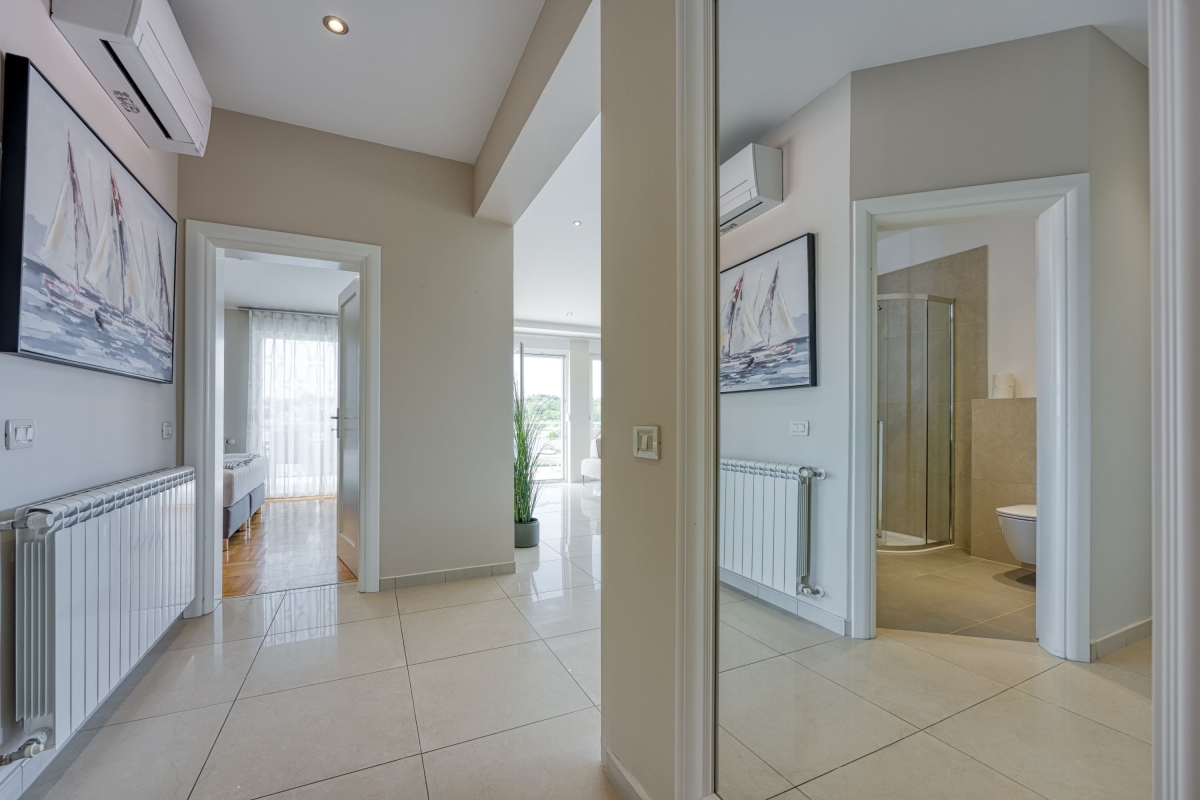 Escape to southern Istria! This luxurious 1st-floor apartment for 4 is just a 2-minute walk from the coast. With a shared pool and panoramic sea views, it is the ideal retreat for friends or family who want to discover the delights of Croatia and relax in peaceful surroundings.