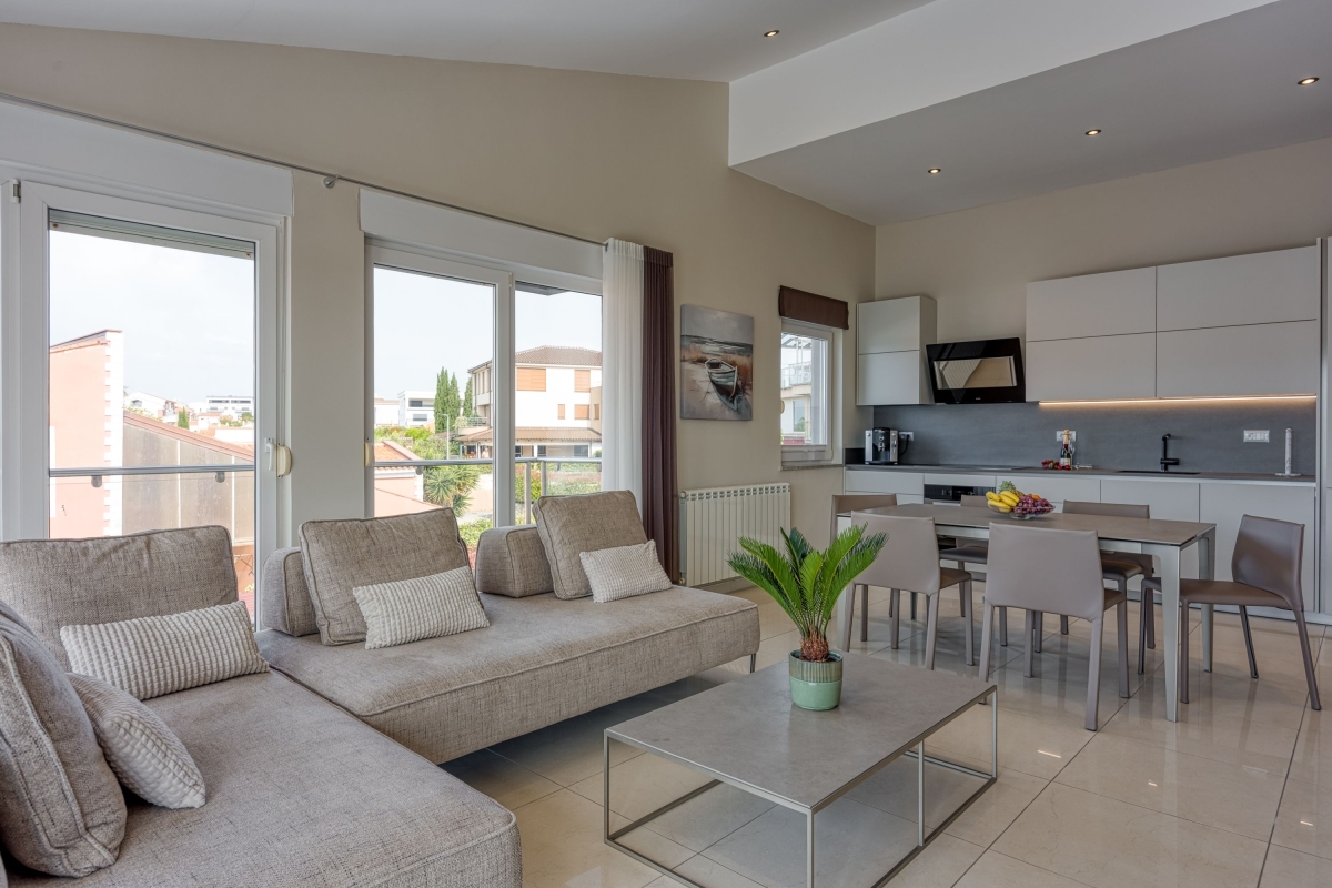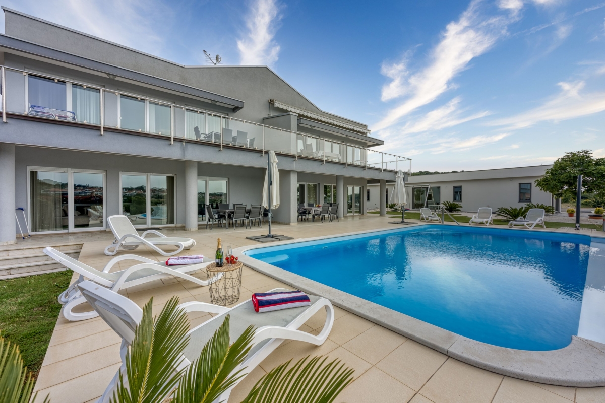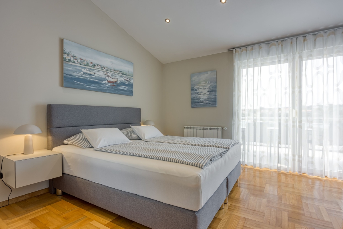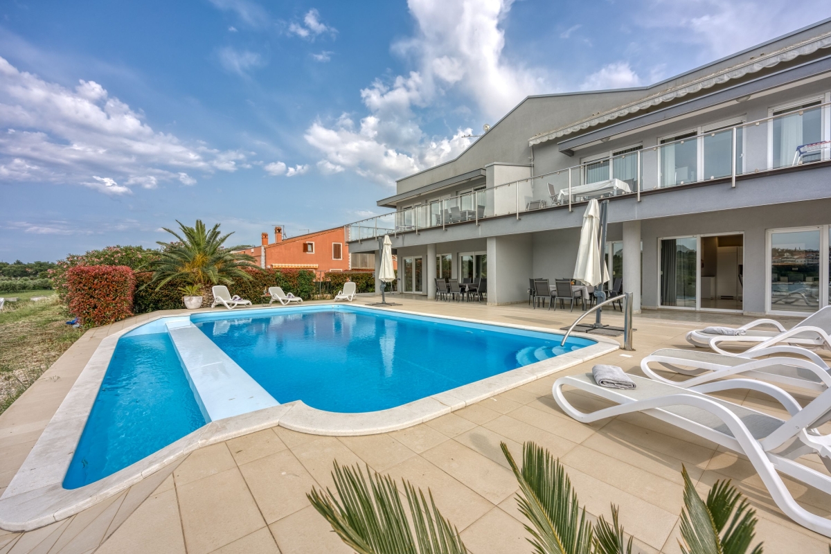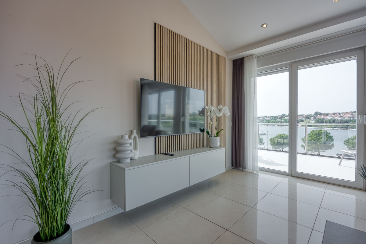 Escape to southern Istria! This luxurious 1st-floor apartment for 4 is just a 2-minute walk from the coast. With a shared pool and panoramic sea views, it is the ideal retreat for friends or family who want to discover the delights of Croatia and relax in peaceful surroundings.