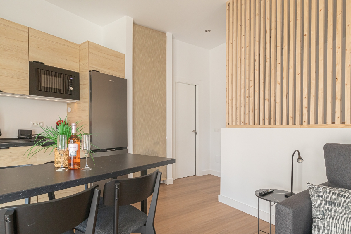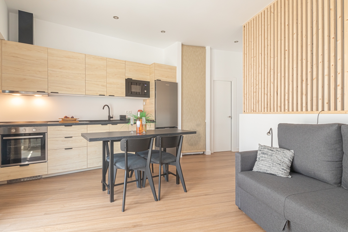 The apartment also features a fully equipped kitchen with an induction hob, a coffee machine, an electric kettle, a microwave, a toaster, an oven, and a fridge with a freezer, allowing guests to prepare delicious home-cooked meals. A dedicated laptop-friendly workspace ensures a convenient balance of leisure and work, making this apartment a delightful choice for a memorable seaside stay.