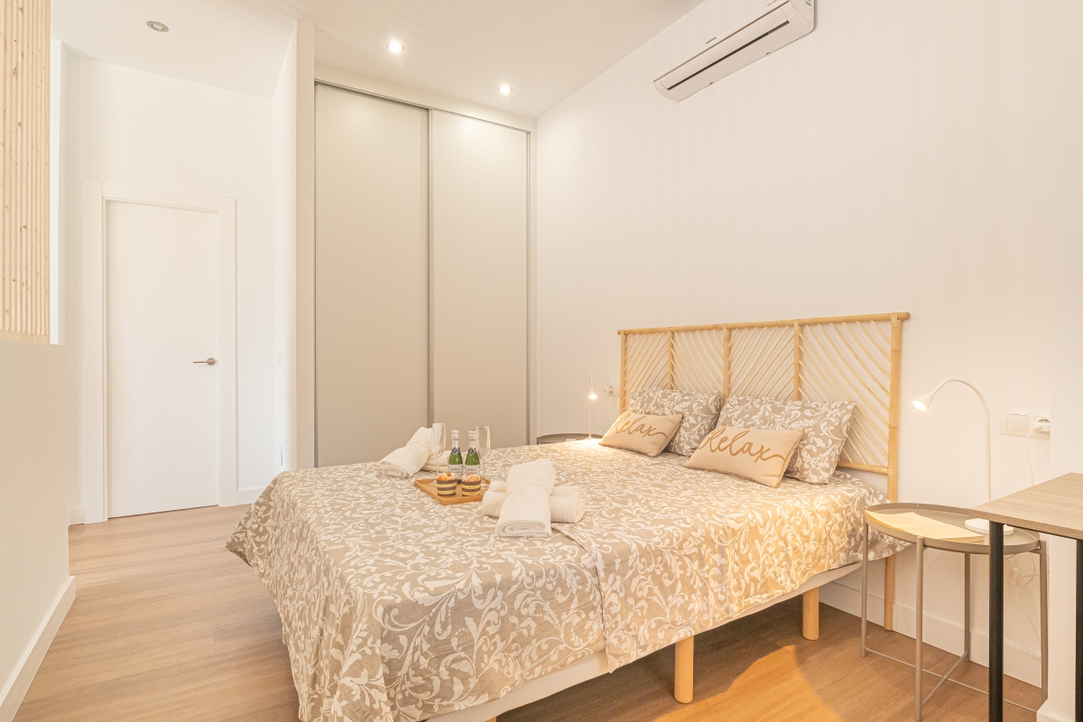 Bedroom 1: This bedroom has a double bed and a wardrobe.