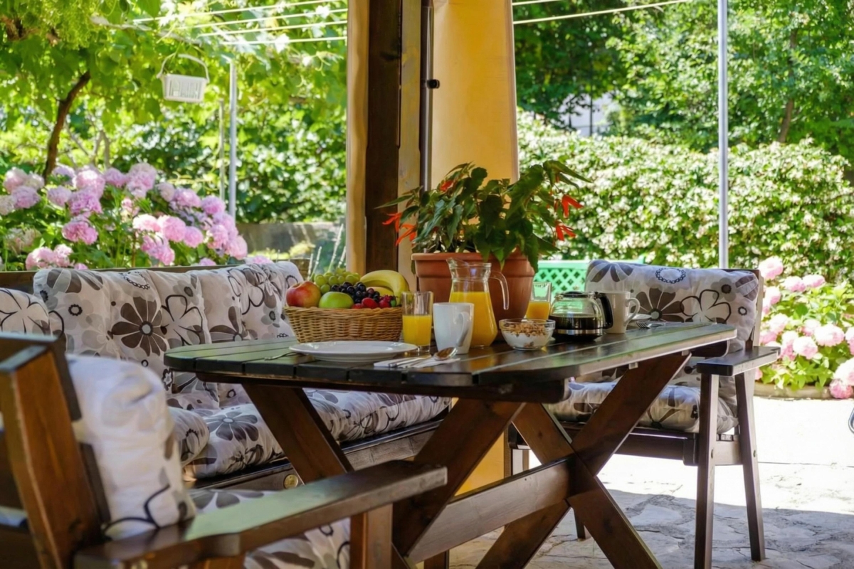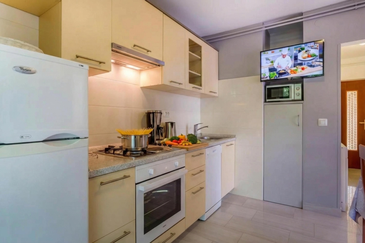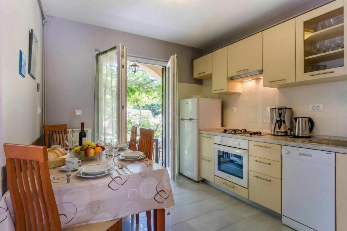 This is a ground-floor apartment accommodating up to 4 guests. The living room extends onto a lovely terrace, perfect for enjoying your morning coffee or evening relaxation. The apartment is equipped with modern amenities, including Free Wi-Fi and Satellite TV. The kitchen includes a coffee machine, dishwasher, microwave, and oven.
