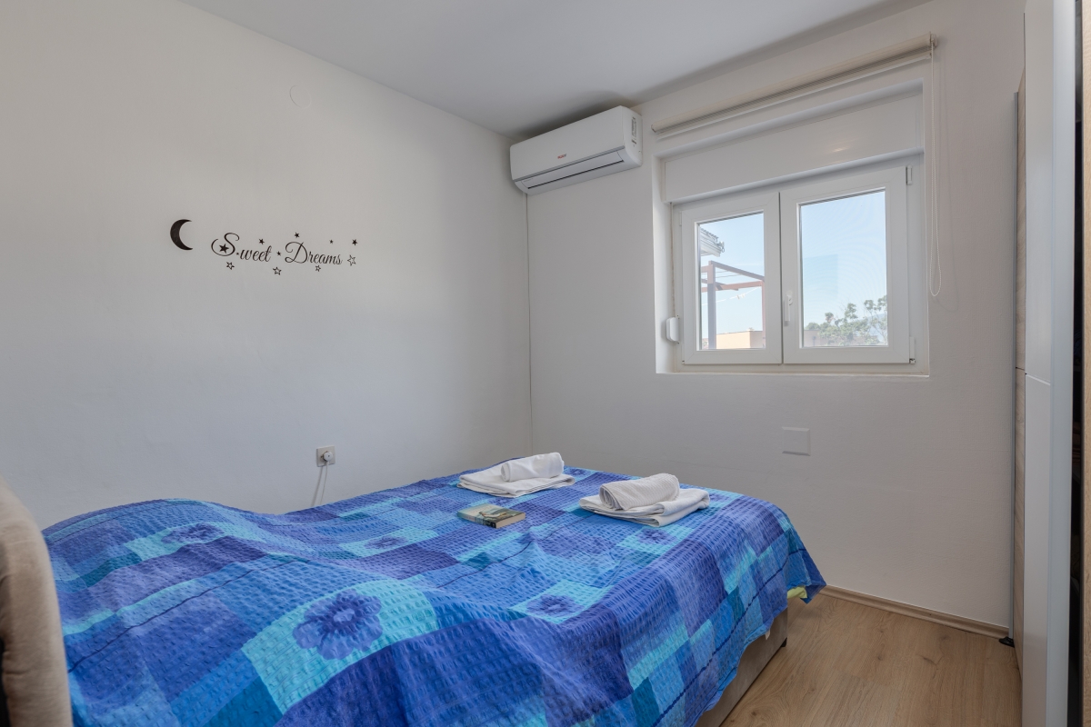 Bedroom 1: The bedroom features a double bed, a wardrobe, and air conditioning.