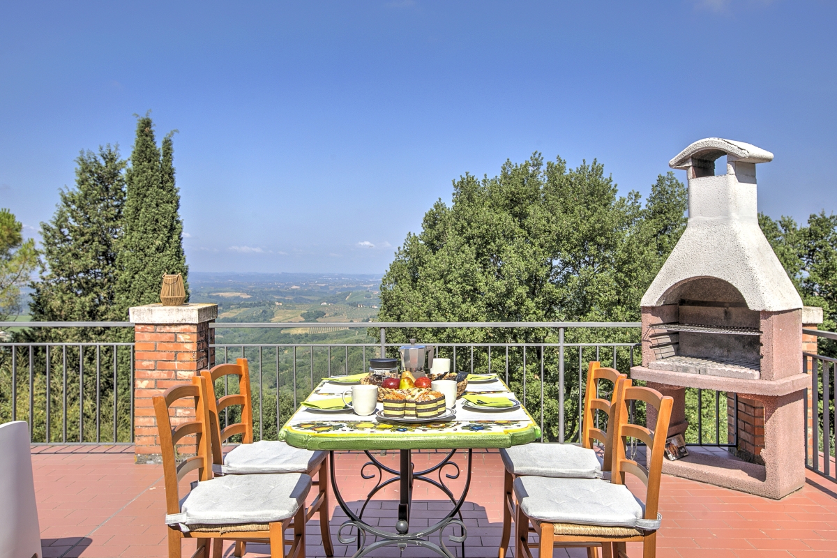 Experience rustic charm and Chianti views from a bright hillside villa with a terrace, BBQ, and a fully equipped kitchen.