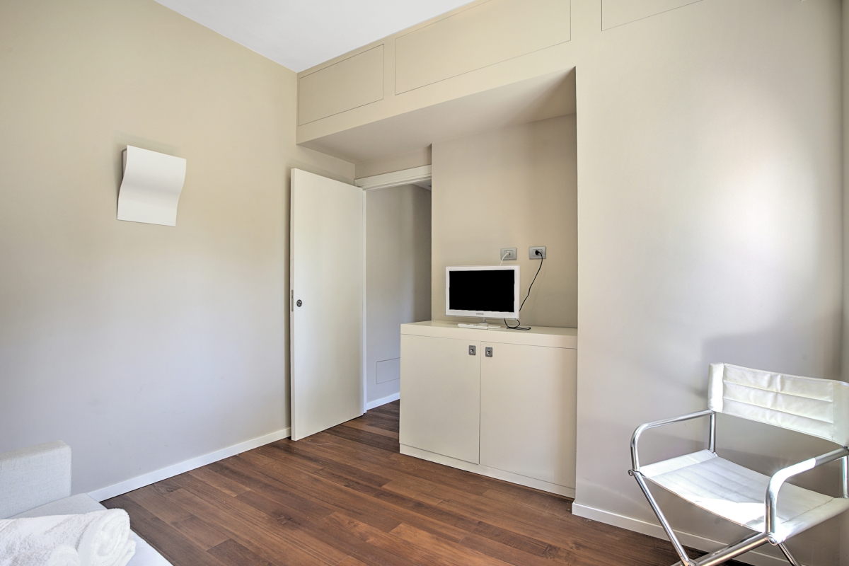 Bedroom: The airy bedroom has a sofa which converts into a comfortable double bed, a flat-screen TV and a wardrobe.