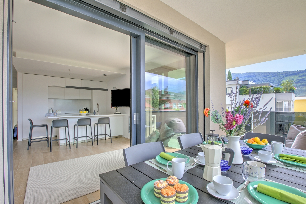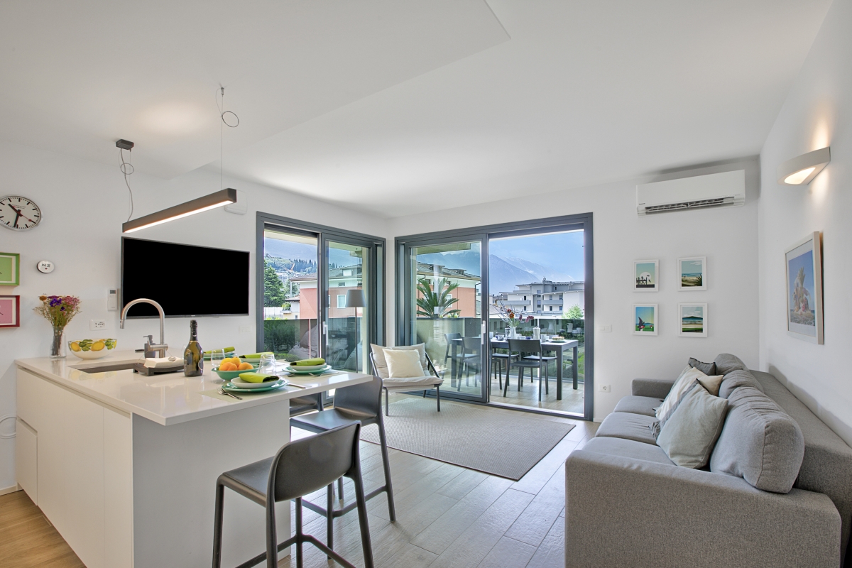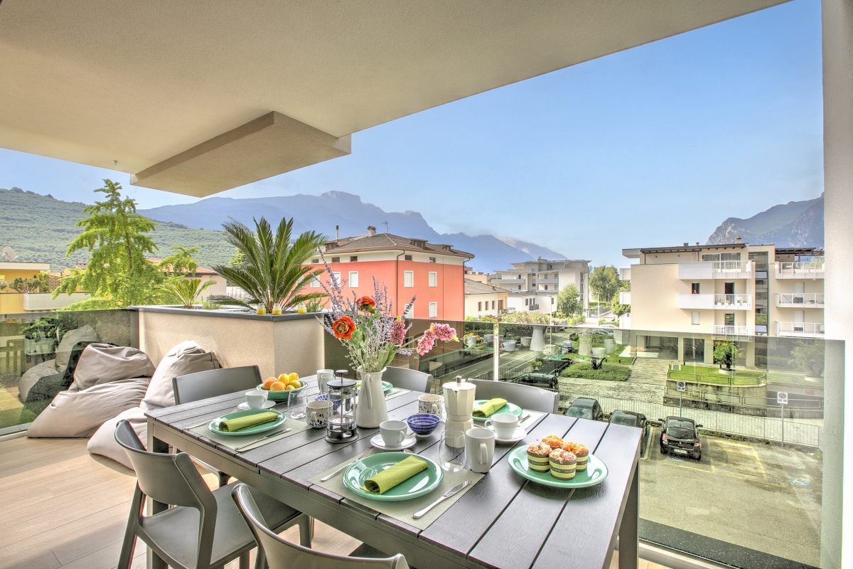 Relax on the lake-view terrace, enjoy sunny interiors, and stay comfortably in this serene, family-friendly apartment in Riva del Garda.