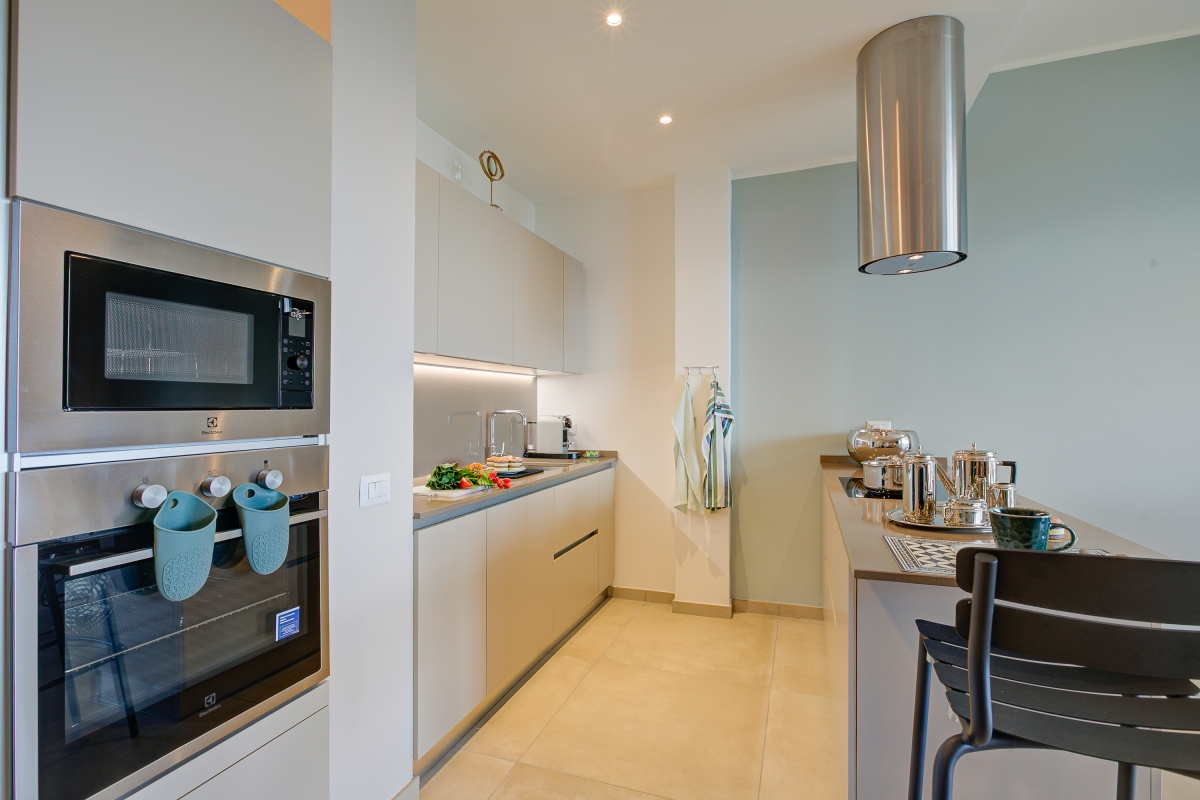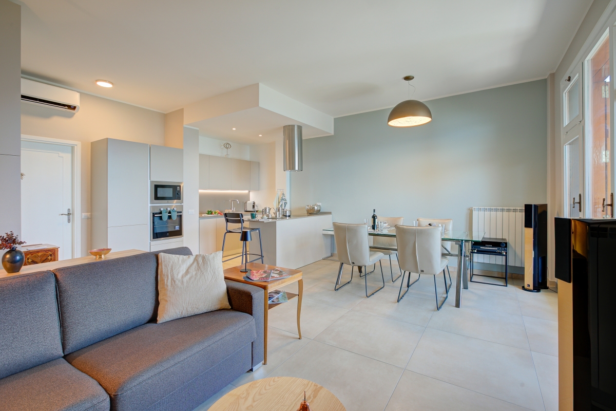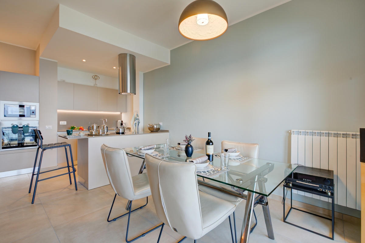This attractive modern apartment is stylishly decorated with contemporary pieces. The open-plan living space enjoys stunning views over Lake Maggiore from the French windows that open onto a shaded balcony. The balcony has chairs where guests can relax, enjoying their peaceful surroundings. There is also a café-style table and chairs for snacks al fresco.