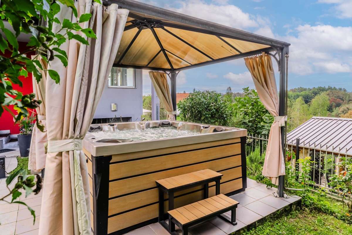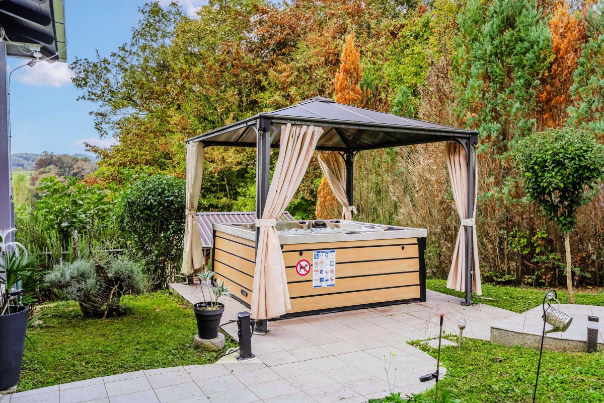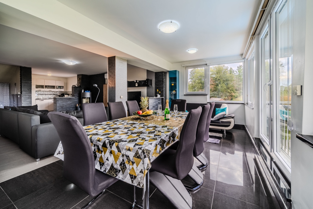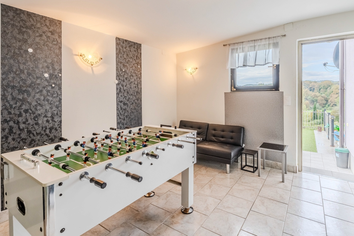 Step outside into the large, fenced garden, thoughtfully created for both relaxation and play. Guests can take a refreshing dip in the private pool, soak in the outdoor hot tub, or enjoy evenings at the inviting grill-and-chill area. Children will love the slide and swing chair, while adults can relax knowing the garden is safe and private. Entertainment continues indoors with a fun area featuring table football, darts, and even table tennis for lively competitions. Surrounded by unspoiled nature, guests can swim in the river on warm days, follow scenic cycling and hiking routes, or go mushroom picking in nearby forests. Whether you seek tranquility, adventure, or a mix of both, Riverside House near Karlovac promises an unforgettable holiday experience in a setting where comfort and nature meet harmoniously.
