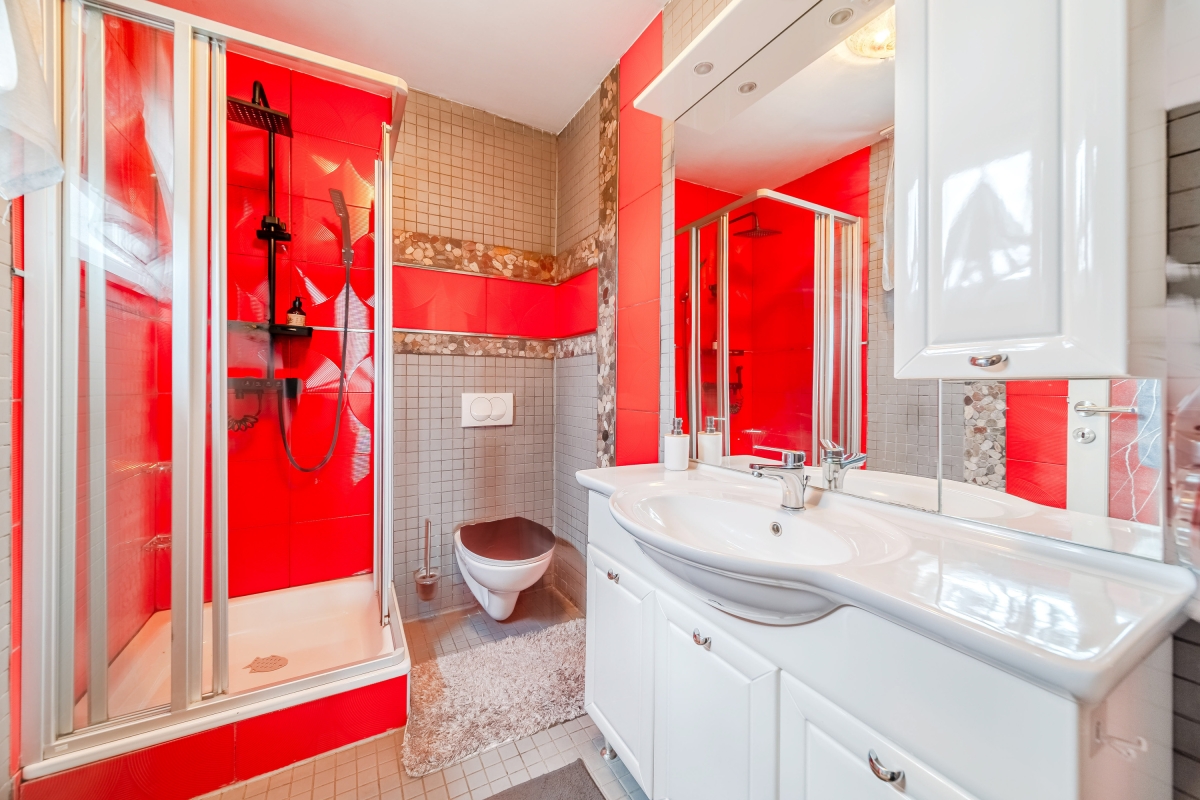 Bathroom 2: This bathroom features a shower, wash basin, and WC.