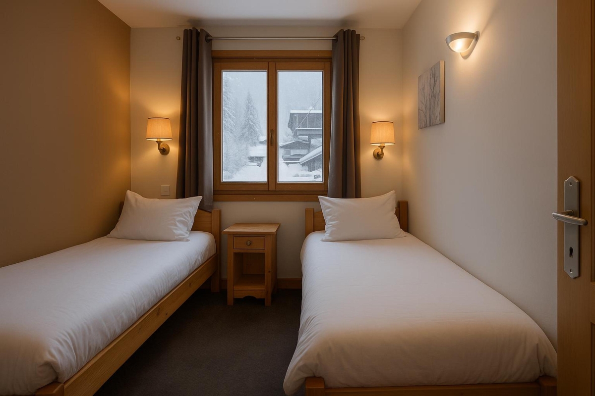 Enjoy a modern ski retreat with mountain views, cosy interiors, balcony dining, shared pool, sauna, and easy access to Vallorcine slopes.