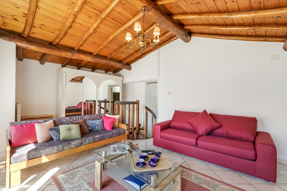 Climbing the spiral staircase to the upper floor, you will find yourself between the relaxation room and the double bedroom.