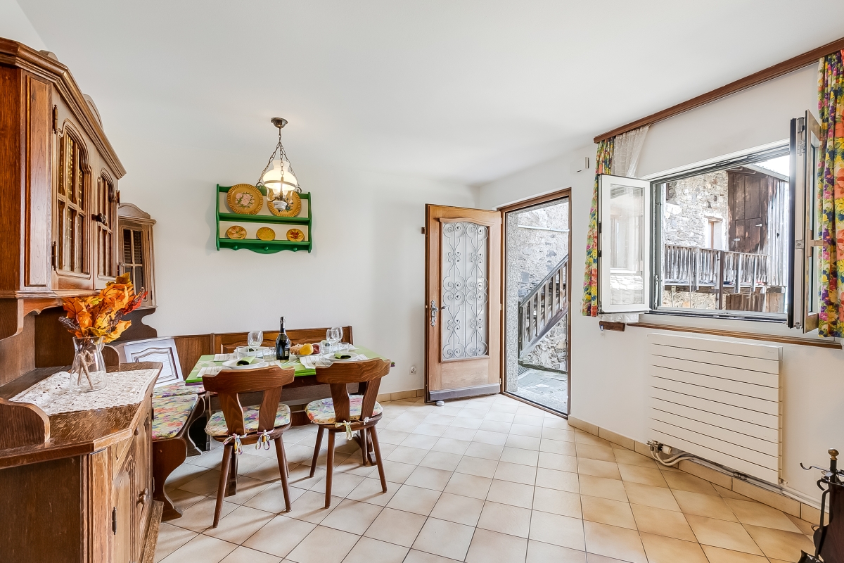 Upon entering the rustic house, you will find yourself in the living room with an open-plan kitchen and a table for four people.