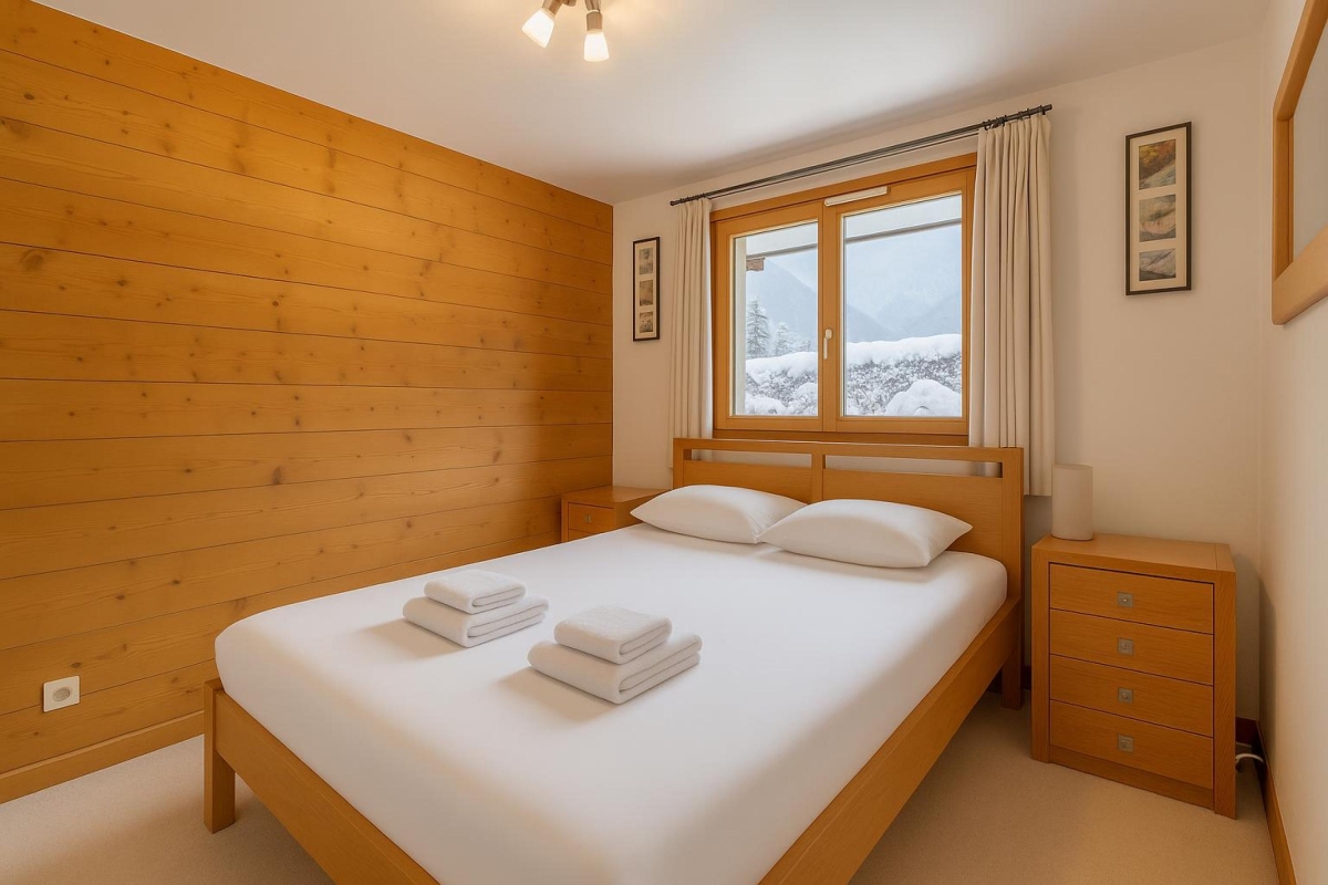 The apartment is in a quiet location in south Chamonix, close to Lac des Gaillands and just 9 minutes walk from Les Moussoux railway station, where visitors can take the Mont-Blanc-Express.
