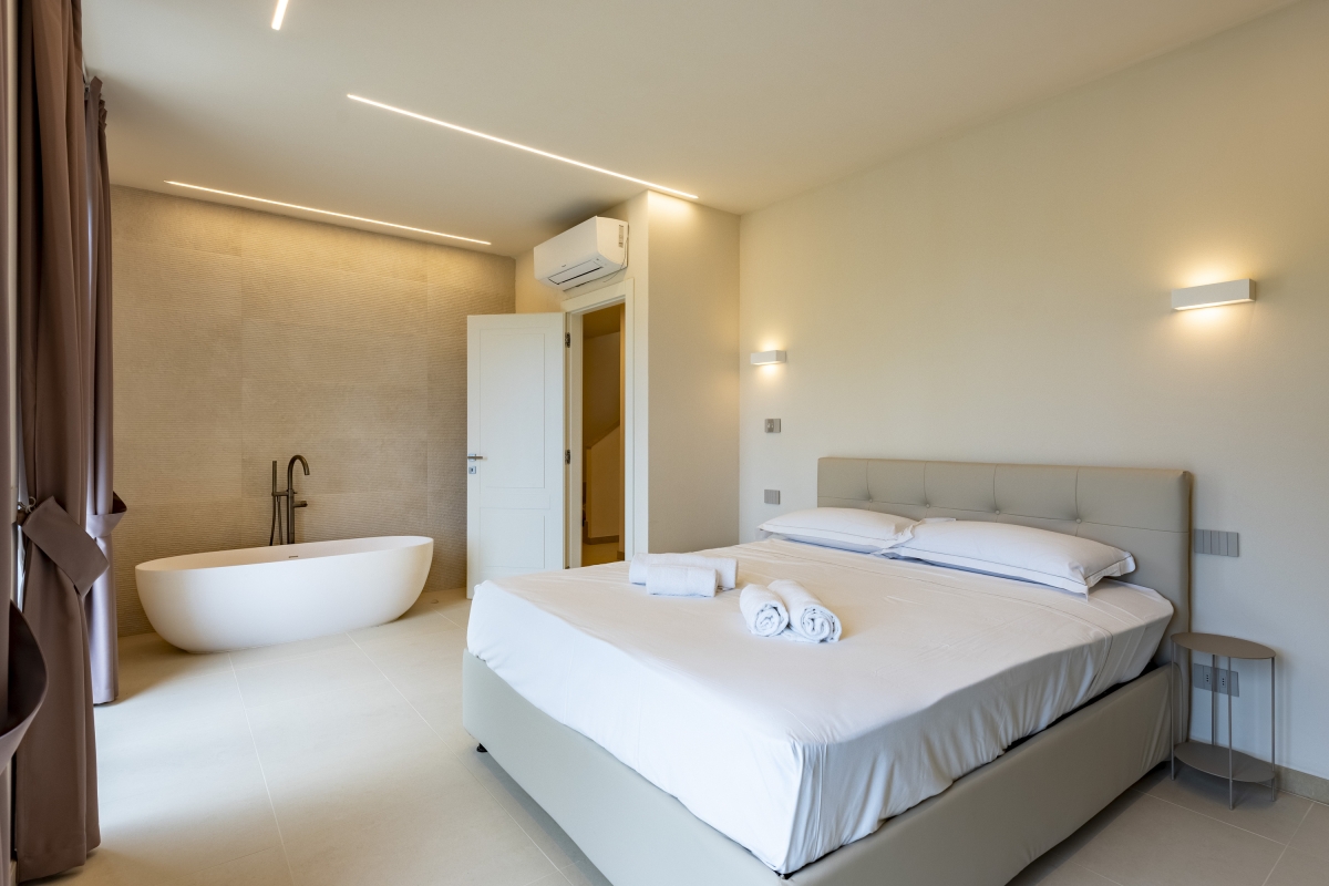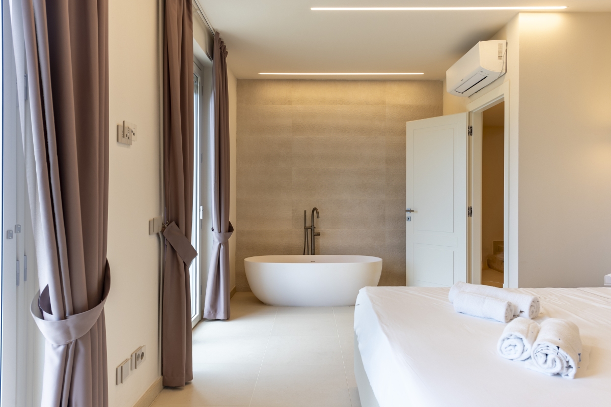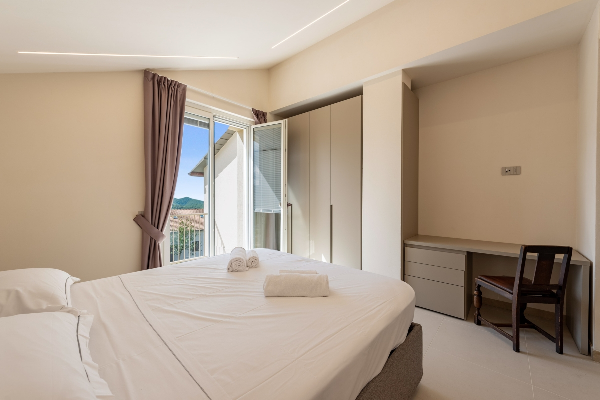 Bedrooms 2 & 3: The 2nd and 3rd bedrooms are located on the 1st floor and are furnished with a double bed and a wardrobe. Both rooms enjoy air conditioning and access to a private balcony.