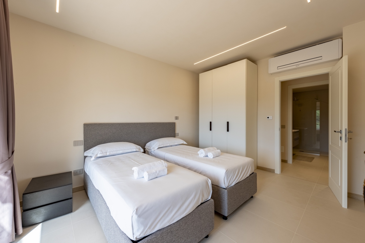 Bedroom: The air-conditioned bedroom is furnished with twin joinable beds, a wardrobe and enjoys access to the private terrace.