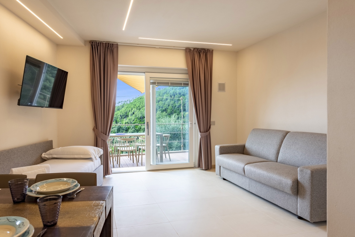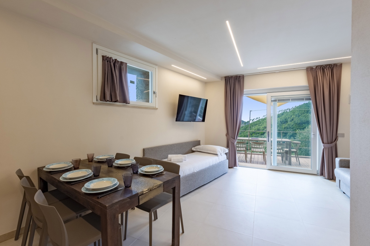 Relax in the hills surrounded by olive groves close to the picturesque beaches of the Italian Riviera. Situated on the first floor of a three-story building, this charming apartment accommodates up to 5 guests and provides the ideal retreat for families or small groups seeking comfort and tranquillity.