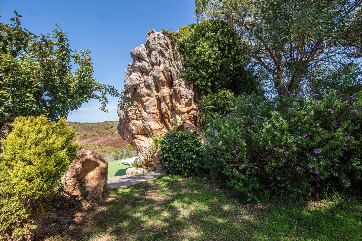 The villa’s extensive garden offers many different areas where guests can relax. There are sunloungers next to the private pool, a second sun-bathing area, next to dramatic rocks and an open terrace for relaxing with sundowners.