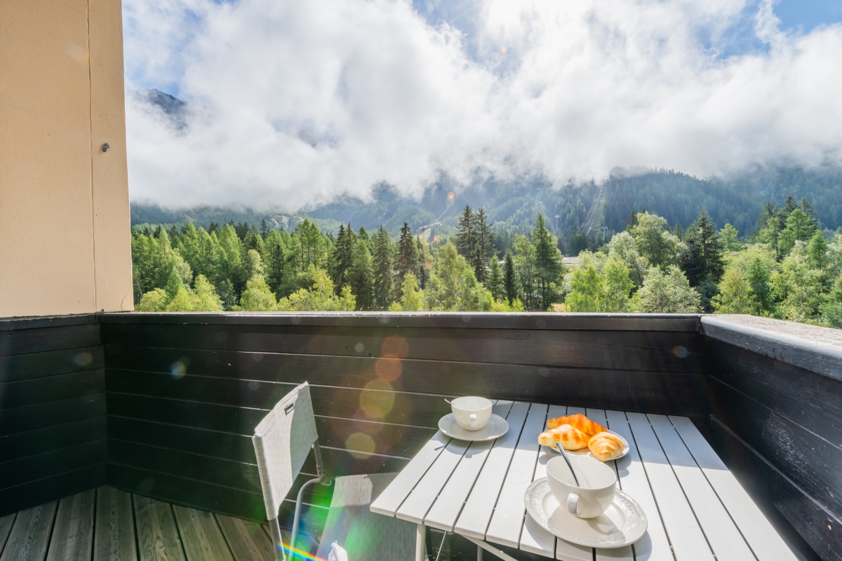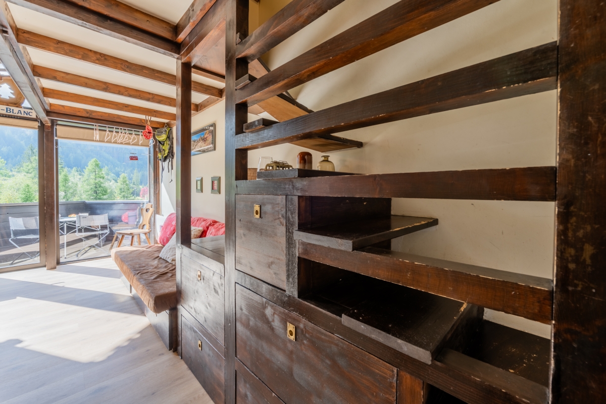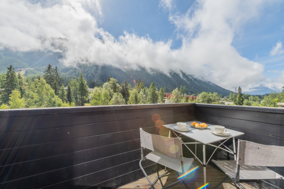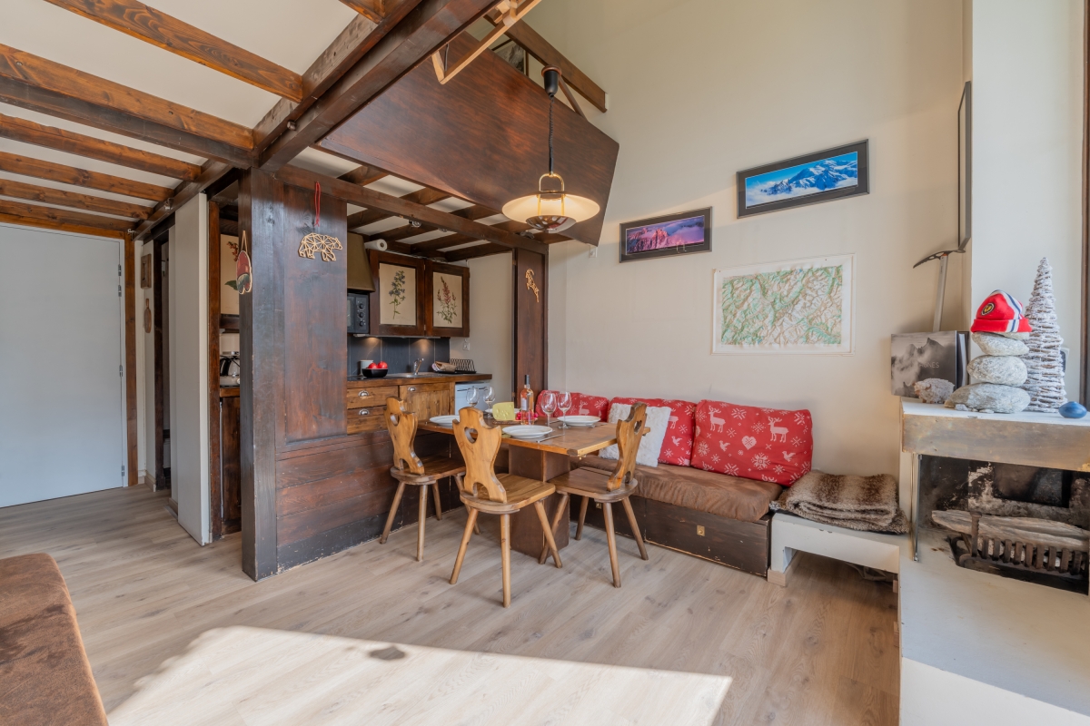 Inside, the apartment welcomes up to three guests with one comfortable bedroom and a bright living room that opens onto a south-facing balcony with sweeping mountain views. Both the living area and balcony are bathed in natural light—ideal for stretching out and literally bathing in the sun—while the living room also frames lovely green and mountain vistas from indoors. The compact kitchen is well-appointed for self-catering, featuring an induction hob, coffee machine, dishwasher, oven and fridge with freezer. Cozy, practical and perfectly placed, Bruyères 213 is an inviting alpine base for couples, small families, or friends seeking effortless access to Chamonix’s slopes and scenery.