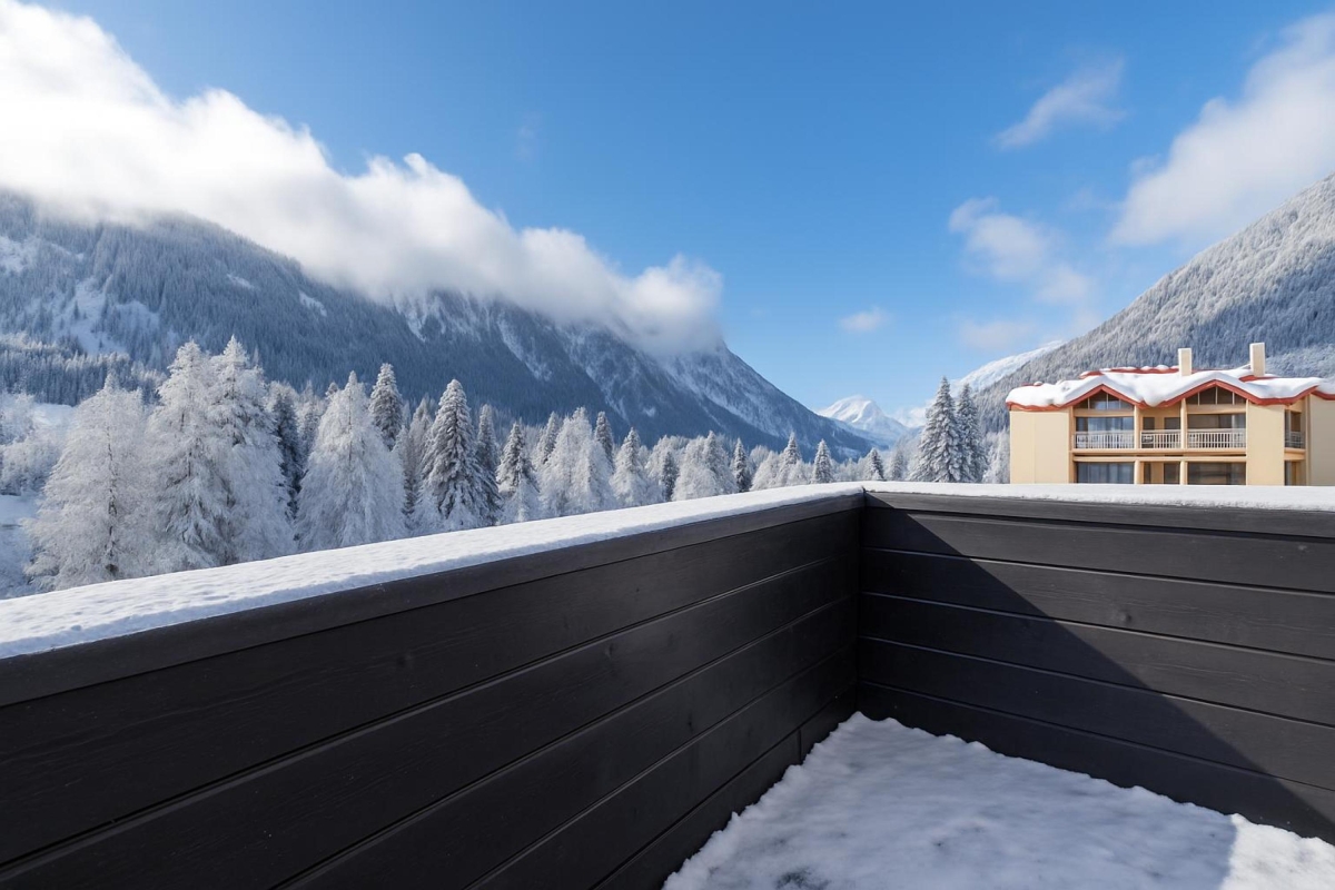 Savor alpine tranquility at Résidence Grand Roc, featuring mountain views, sunny interiors, a balcony, and easy access to Chamonix’s ski slopes.