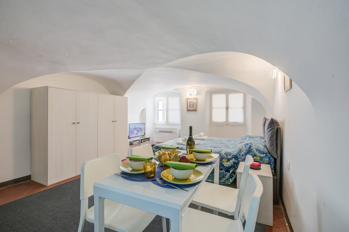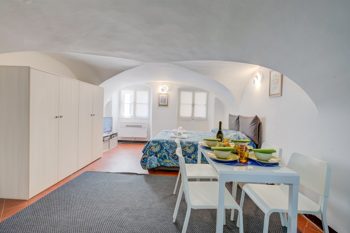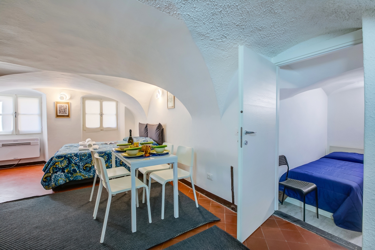 this holiday home in Sanremo is a welcoming ground-floor apartment that invites you to discover the city from its historic heart. Just an eight-minute walk from the beach and bustling seafront, this cozy retreat comfortably accommodates up to four guests with one bedroom and a bright living room. Nestled among Sanremo’s characteristic alleys, the property marries the rustic charm of its exterior with a modern, stylish interior—arched ceilings add character and a sense of old-world charm.