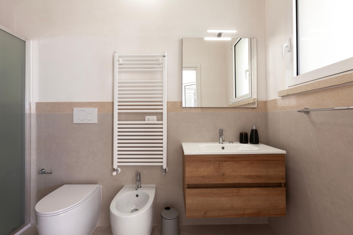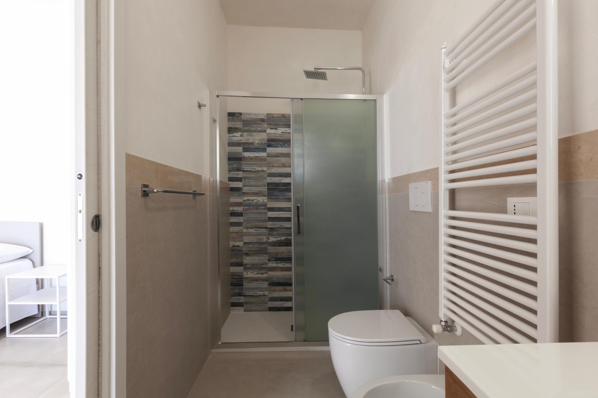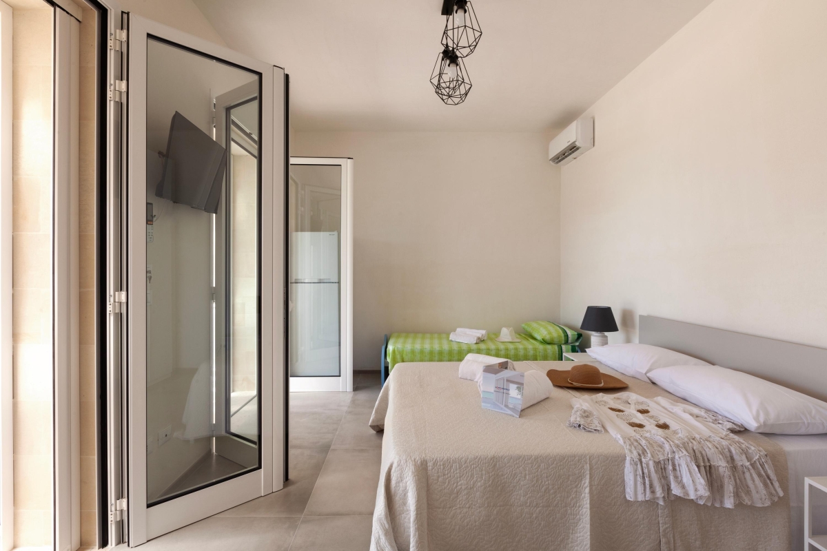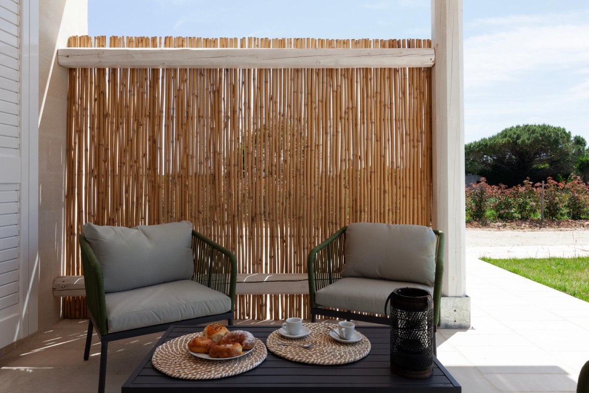 The outdoor spaces are equally impressive, offering a beautifully maintained shared garden and a sparkling shared pool for cooling off on sunny days. A terrace area with an outdoor kitchen and dining setup makes it easy to enjoy meals al fresco, while a cozy relaxation corner with comfortable sofa chairs invites you to unwind in the open air. With its seamless blend of style, convenience, and serene surroundings, this holiday home is an ideal retreat for families or friends seeking an unforgettable stay in Otranto.