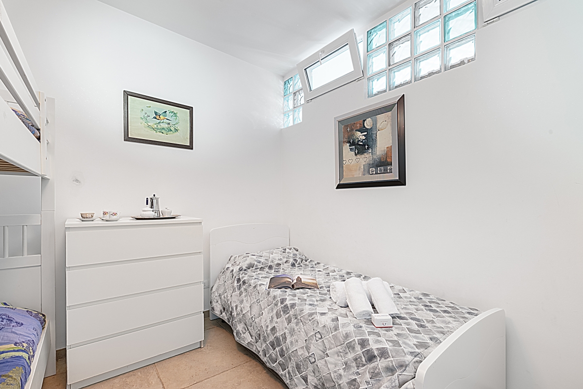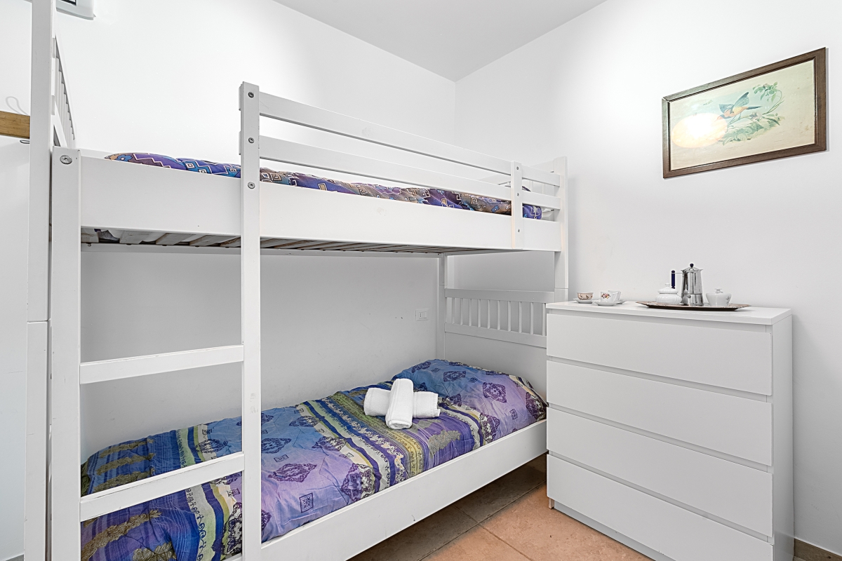 Bedroom 2: The 2nd air-conditioned bedroom is ideal for children or additional guests and is furnished with bunk beds and a single bed