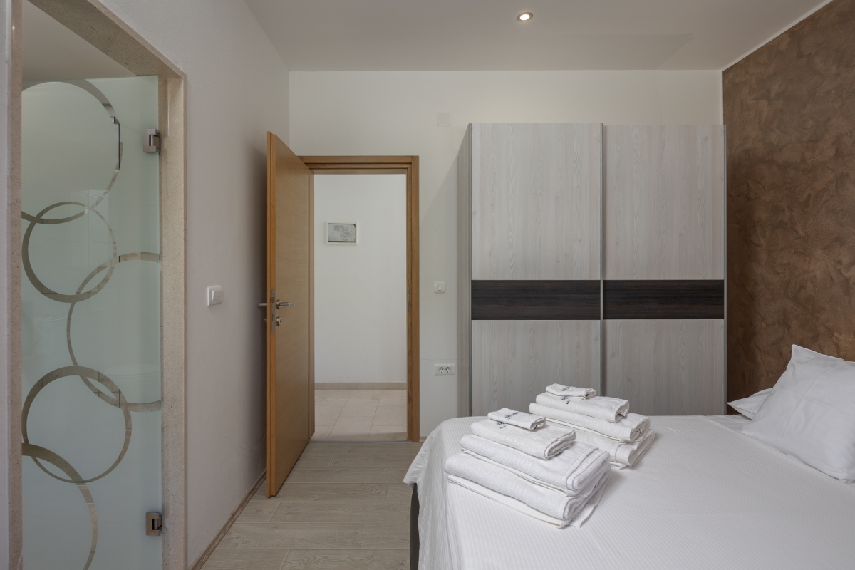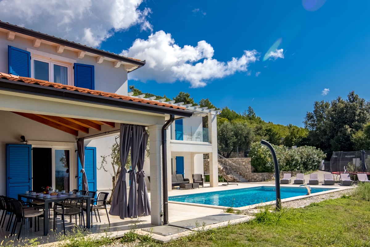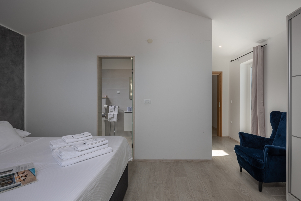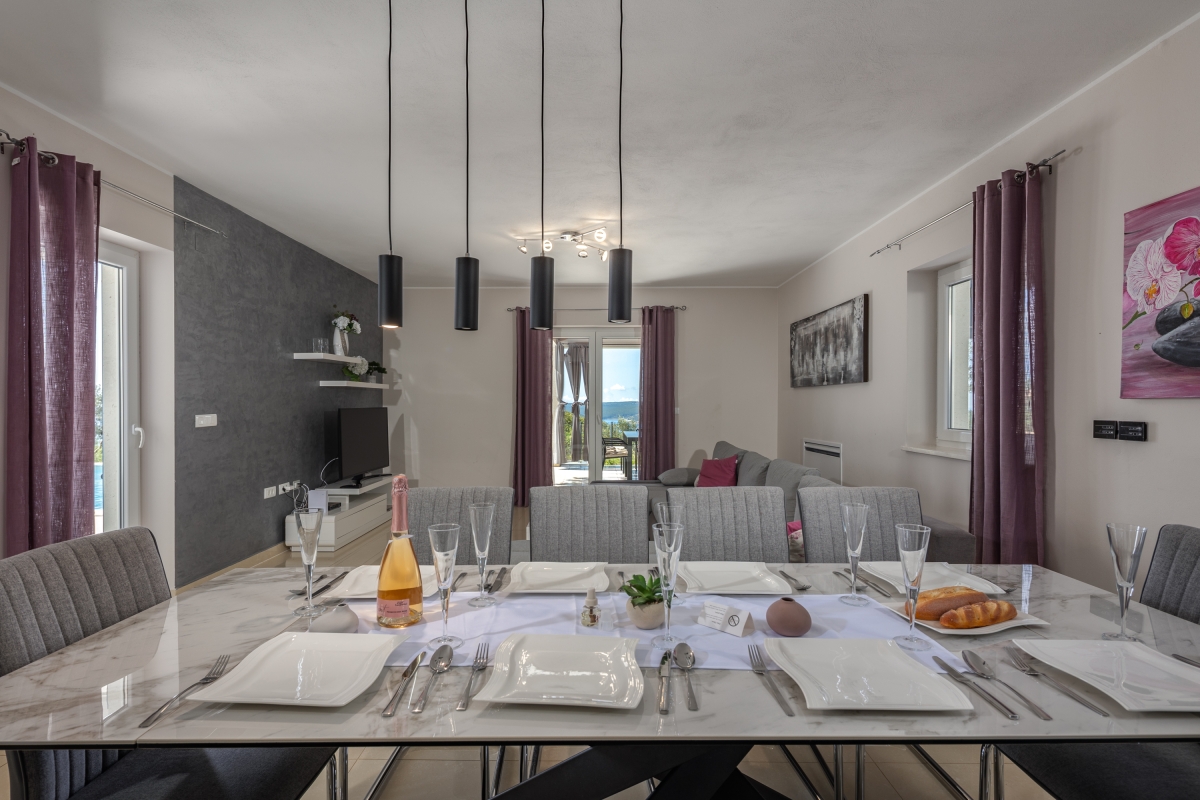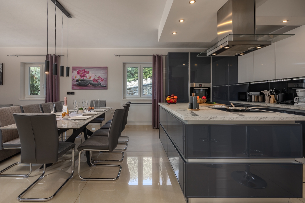 This holiday home is an elegant, ground-floor retreat that comfortably sleeps eight across four beautifully appointed bedrooms. Nestled in the peaceful village of Viškovići, the villa marries modern design with full comfort, set amid the lush greenery of southeastern Istria. Wake to stunning sea (and coastal/lake) views from many vantage points around the property, and enjoy leisurely meals in the garden or at the dedicated outside dining area that invites alfresco living.