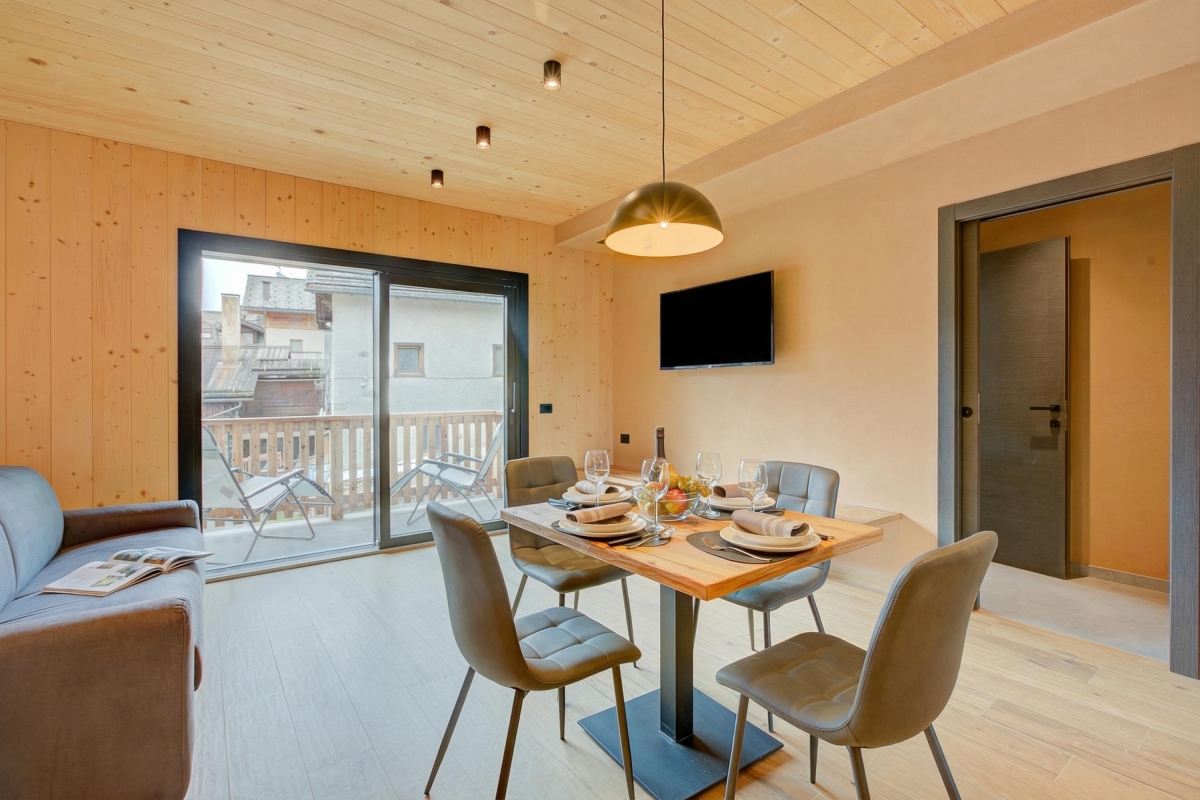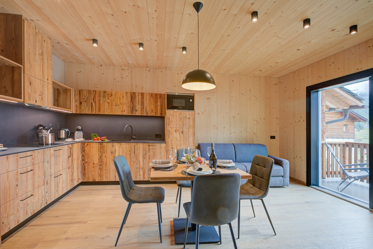 This contemporary wood-panelled, chalet-style apartment is arranged on the 1st floor of a 3-storey building and makes the ideal base for a fun-packed escape with family or friends. The property features a BBQ for alfresco cooking and a private balcony/terrace that's ideal for morning coffees whilst soaking up the mountain views. Guests can also enjoy access to a shared wellness centre once a week during their stay.