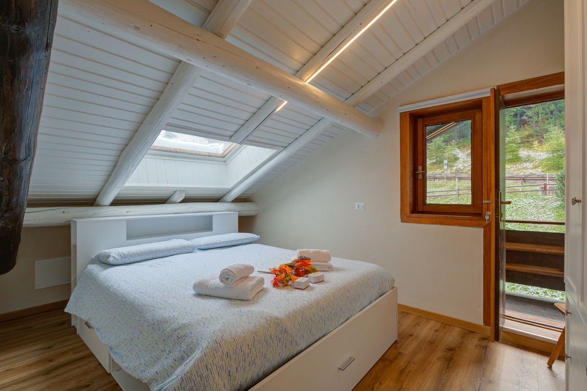 Practical for skiers and nature lovers, the Giorgio Rocca chairlift sits just 400 meters away (a convenient shuttle bus is available), and a nearby ski shuttle makes slope access effortless. Inside, the open-plan living area is furnished with comfortable sofas and a flat-screen TV, flowing seamlessly into a well-equipped kitchen. The kitchen includes an electric kettle, induction hob, microwave, dishwasher, toaster, and a fridge with freezer, making self-catering easy and enjoyable.This is an ideal base for families or groups seeking modern comfort with alpine charm.