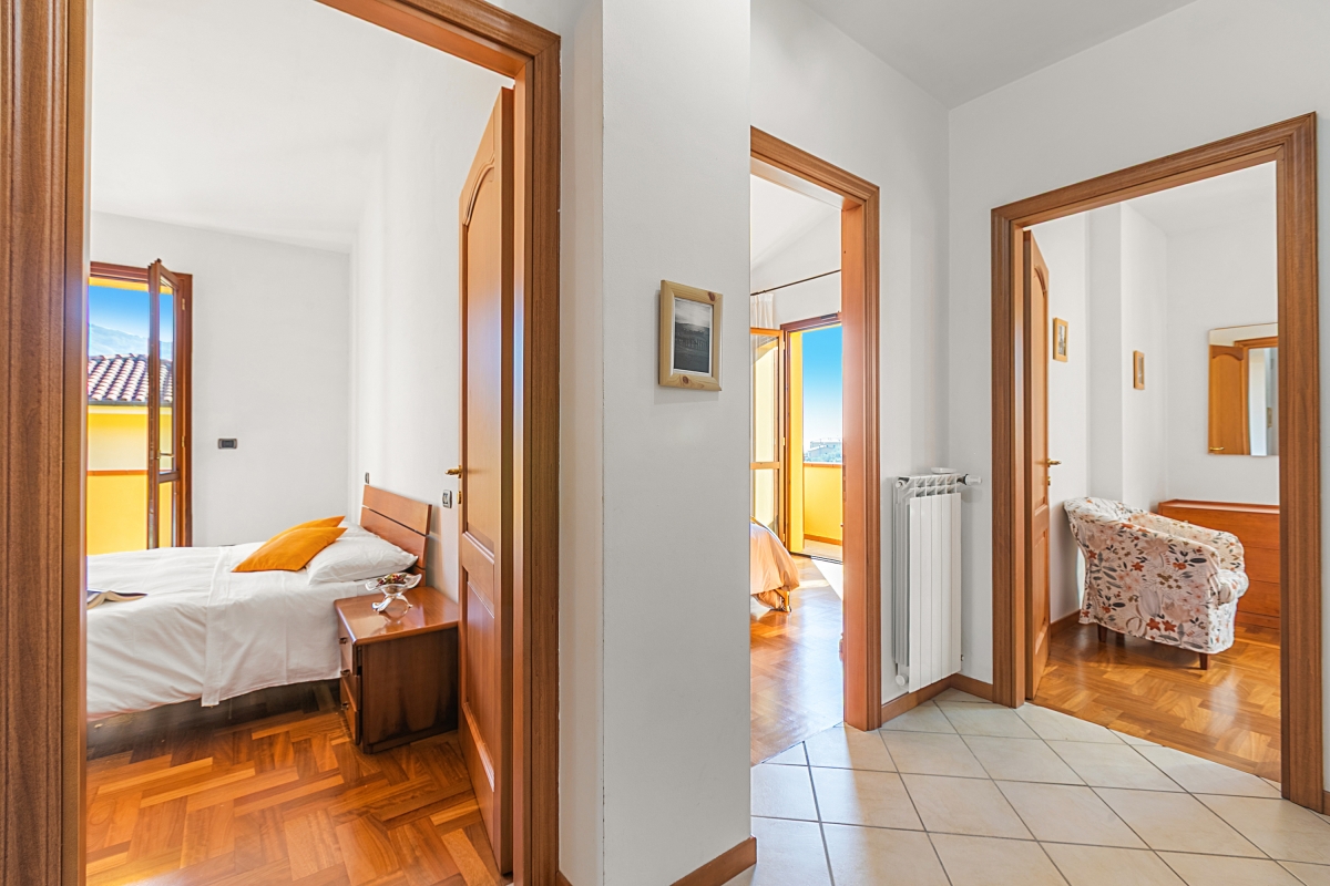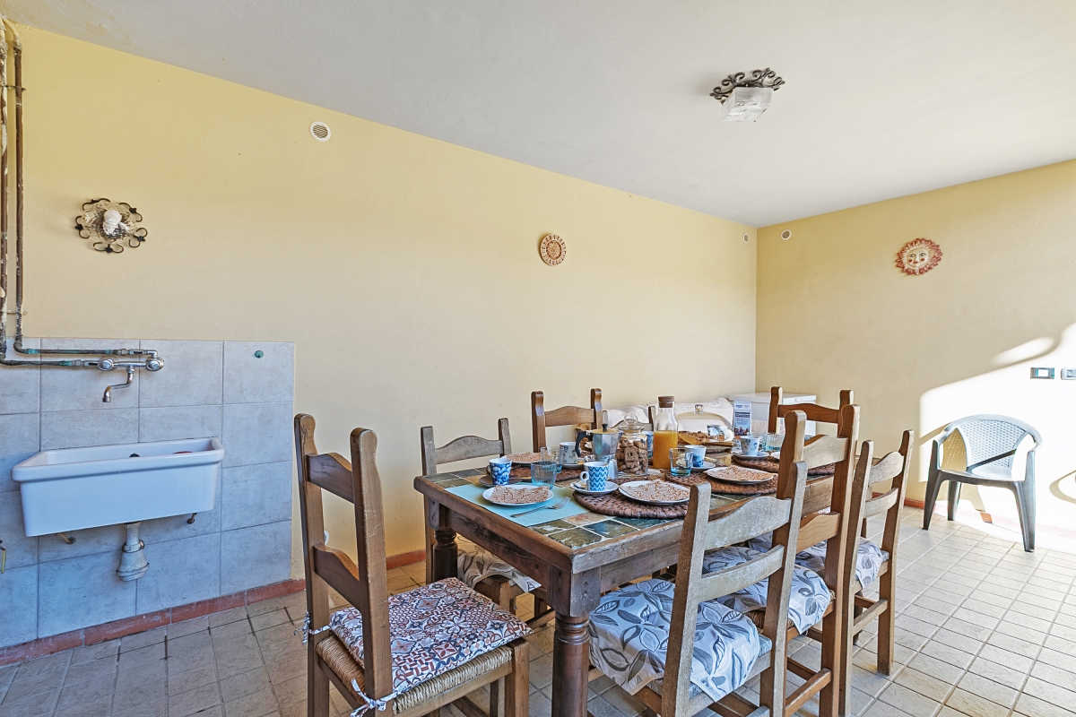 The entrance to the house is accessed by climbing 24 steps. The door opens onto a large open area divided between a living room with satellite TV, open fireplace and comfortable seating, air conditioning, and a closed piano that enriches the room and dining room. Both areas have access to a terrace. utility room with washing machine, well-equipped kitchen with gas hob, extractor hood, dishwasher, electric oven, microwave, fridge with freezer, electric kettle. The kitchen leads to a veranda equipped for pleasant outdoor dining. 17 comfortable steps lead to the first floor where there is a split air conditioning unit in the entrance hall. On this floor there are 3 large double bedrooms with fans and wardrobes, 2 of which have access to the balcony; large bathroom with bathtub. Climb 17 steps to reach the third floor where there is one private room and one bedroom with two single beds, wardrobe, air conditioning and a view of the pool.