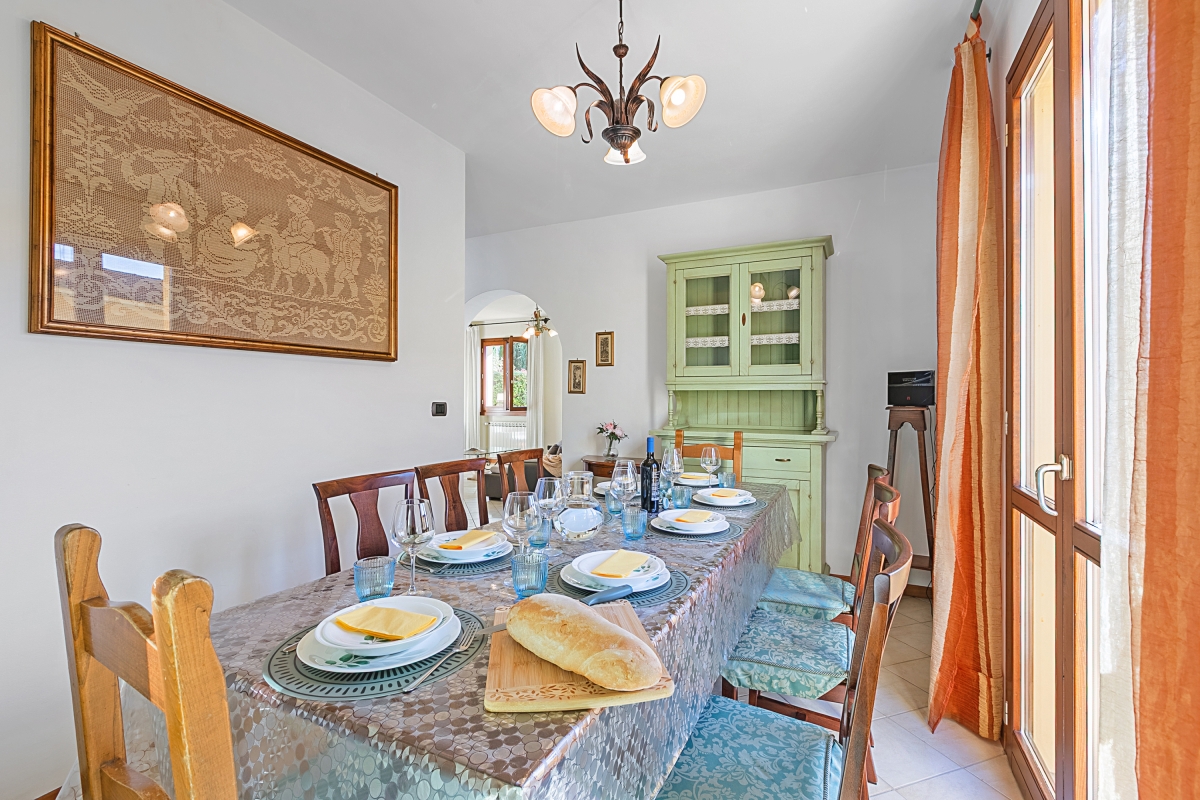 Located in a sunny and quiet position, this holiday home is spread over three floors, set in an enclosed property with 1 internal parking space, barbecue, covered terrace equipped for outdoor dining and a beautiful swimming pool in an elevated position (10 steps up) from which you can enjoy views of the hills and Villa Vezzani. Perfect for friends and families who decide to spend their holidays together in Tuscany. The house has been carefully restored and finished, offering comfortable and very bright spaces.