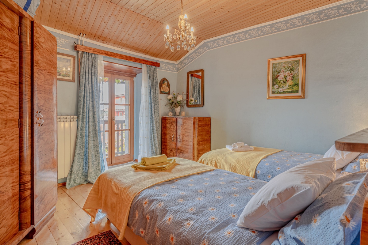 Bedroom 3: The third bedroom is furnished with two single beds and a wardrobe. This room also enjoys access to a private balcony.